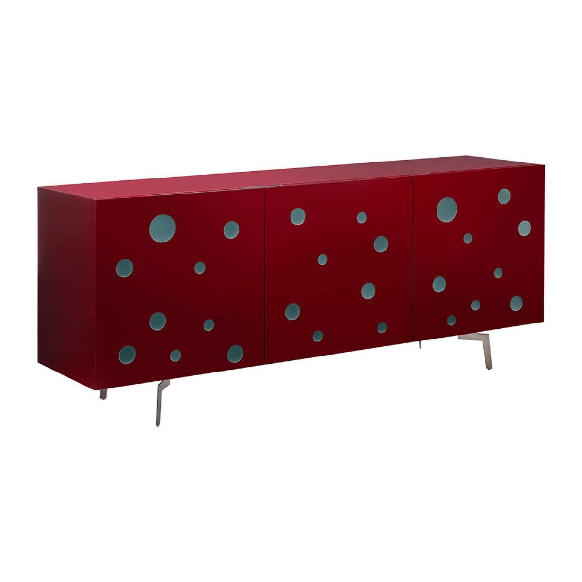 Make a statement with this side board from Horm & Casamania. Designed by Toyo Ito, it features a charming polka dot design with tempered glass interior shelves. When the interior LED lights are switched on the methacrylate discs are illuminated, creating a magical play of light and shade.