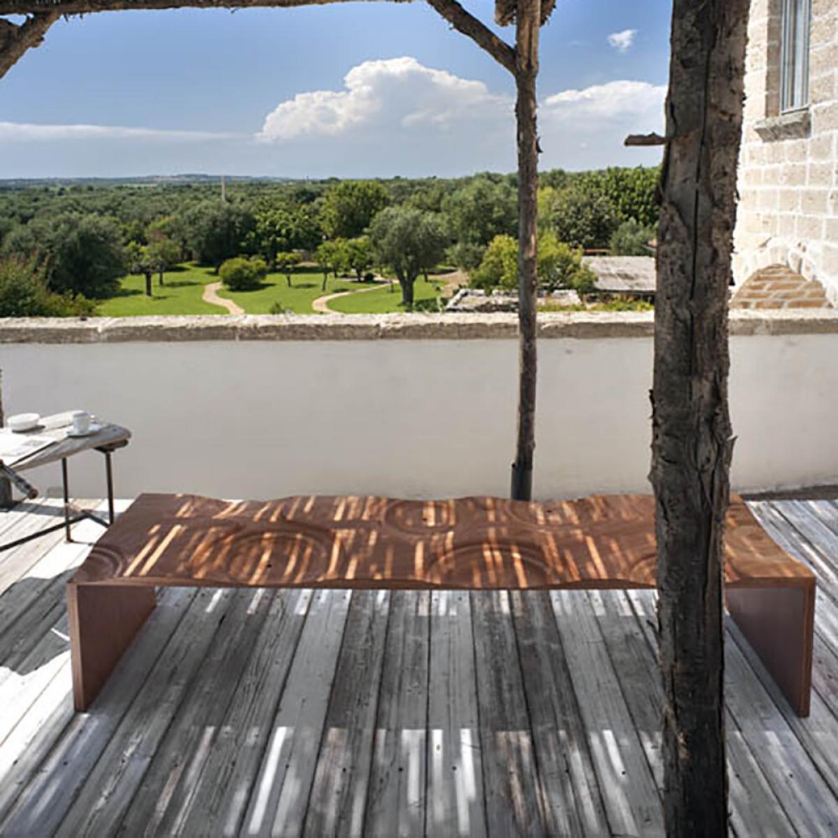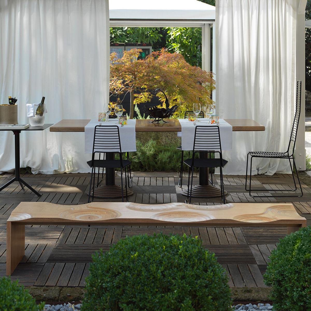 The Ripples outdoor bench is a true icon of international design. Winner of the Golden Compass in 2004, it has water draining holes in the three inner concave seats and is reinforced with a hidden metal bar. Able to withstand humidity & light rain, it's the perfect way to complete your outdoor space. Key features: * Outdoor bench * Material: okoume wood * Dimensions: H40xW200xD50cm * Winner of the Golden Compass in 2004 * Water draining hole in the three inner concave seats * Seat reinforced with a hidden metal bar * A true icon of international design * Designed by St H