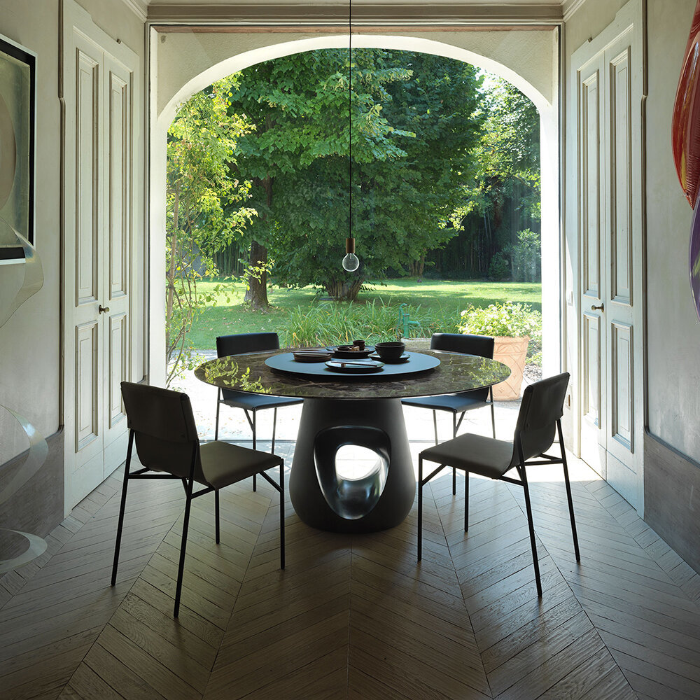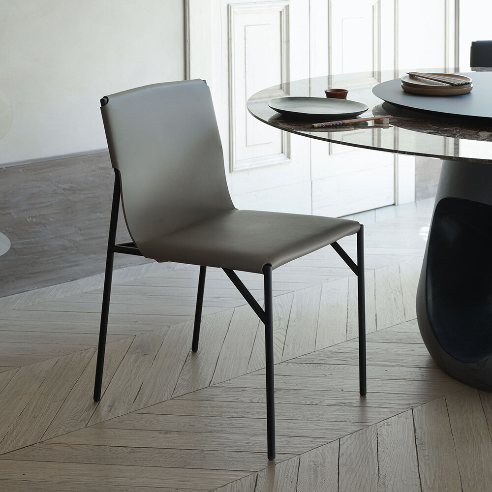 This Tout Le Jour dining chair is a welcome addition to your modern home. Featuring a black painted metal frame, the junctions of the structure are welded by skilled craftsmen at a 45° angle. Complete with leather upholstery and slight padding on the seat, it’s perfect to pair with more pieces from the Tout Le Jour collection.
