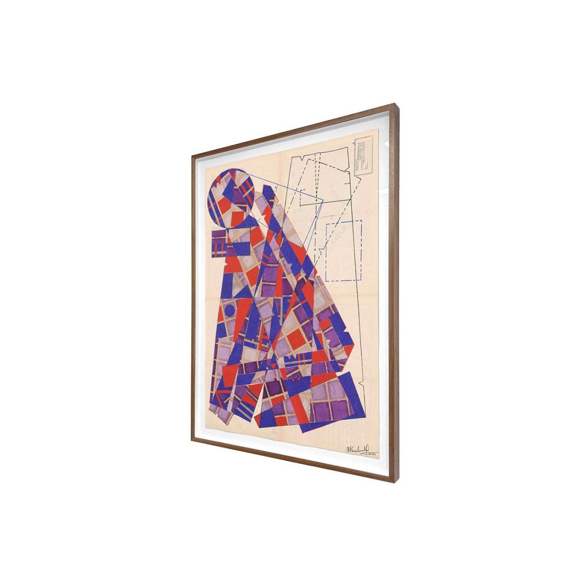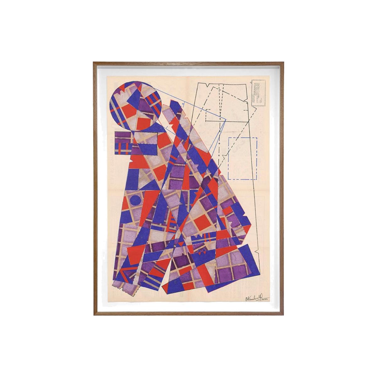 I love this piece for its bold, geometric abstraction, which brings a contemporary edge to any space. It works particularly well in modern or minimalist interiors where it can serve as a statement focal point. For styling, consider pairing it with neutral tones or simple furnishings to let the artwork shine, or integrate its colour palette through cushions or accessories to create a cohesive look. It’s versatile enough to sit above a sofa or in a hallway, and its vibrant reds and blues can energise a space or add depth when used as a contrasting element. Practical tip: frame it with a slim, understated frame to keep the focus on the artwork itself.