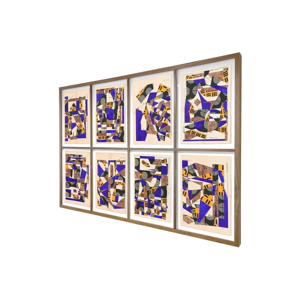 This piece is a vibrant, eye-catching addition that works well in modern or eclectic interiors, especially if you're aiming to introduce colour and movement into the space. I love its bold use of geometric shapes and a rich palette of blues, golds, and neutrals-making it versatile enough to elevate both contemporary and transitional settings. To style it effectively, consider pairing it with minimalist furniture for contrast or surrounding it with neutral tones to let it truly stand out. It also works beautifully above a sofa or in a hallway, where it can act as a focal point. Keep framing and matting simple to let the artwork shine, and don’t be afraid to incorporate other subtle textures or patterns in the accessories to create a cohesive look.