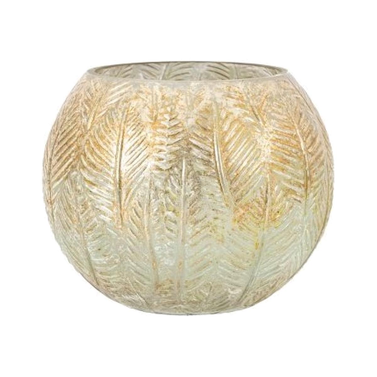 With a antiqued golden feather detail, this tealight holder will create a stunning warm glow and luxurious feeling in any space. Available in a matching larger version. Candle not included. Colour - Gold / White Material - Glass Size - W 150 x D 150 x H 130mm