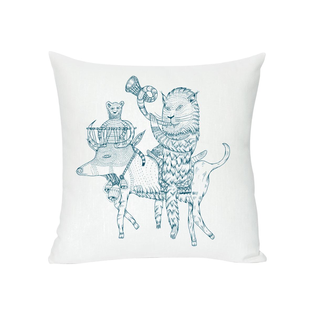 Hornylon Cushion - Screen printed cushion made of linen & cotton by Domestic White/Blue