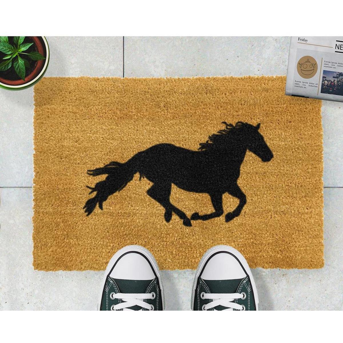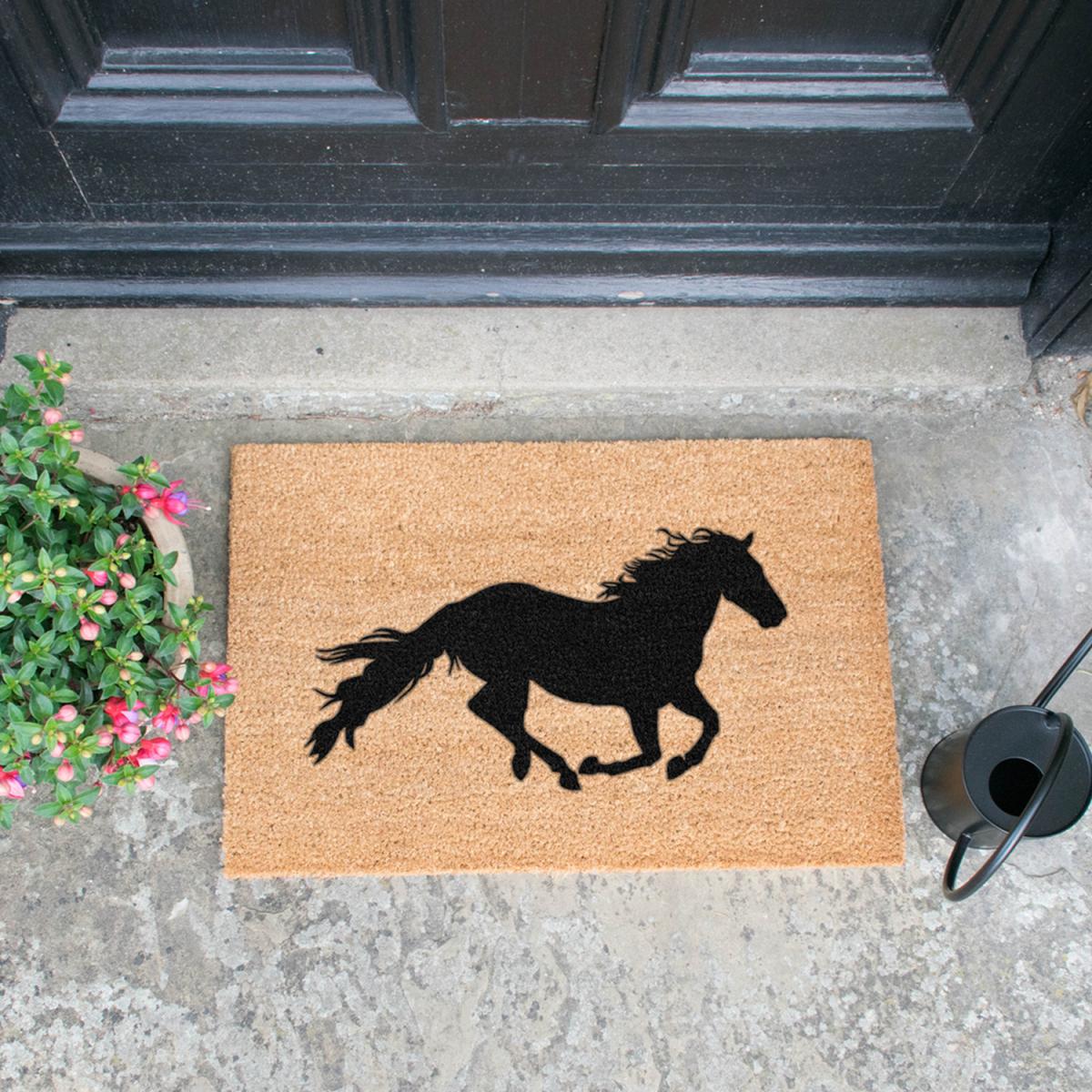 I love how the horse doormat brings a touch of rustic charm and personality to a variety of entrances. Its simple black silhouette on a natural fibre background makes it versatile enough for traditional, farmhouse, or even modern exteriors. It works particularly well in spaces where a hearty, practical aesthetic is preferred - think country homes or cottages - but can also add a playful, welcoming vibe to urban settings. Practical styling tips include pairing it with neutral-toned door hardware or grass-green planters to create an inviting, cohesive look. Just ensure it’s positioned neatly and cleaned regularly to maintain its charm and functionality.