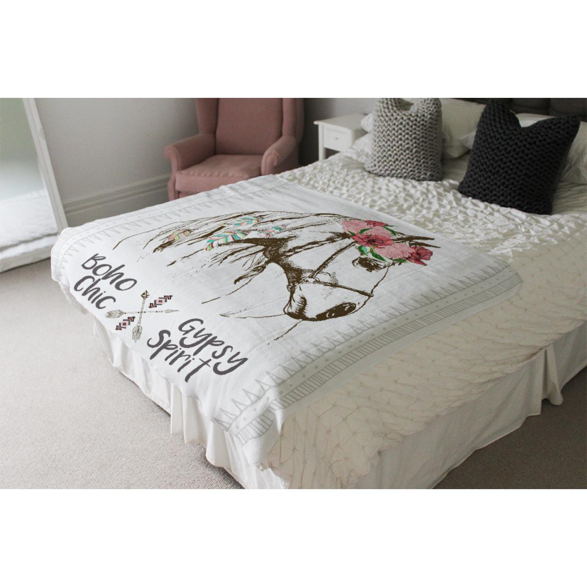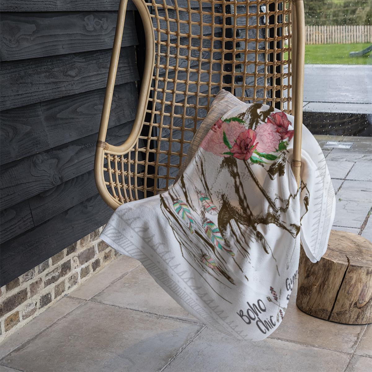 I love this horse with flower throw for its charming yet versatile appeal. Its rich brown tone makes it easy to incorporate into a range of colour schemes, from neutral modern interiors to rustic countryside aesthetics. It works particularly well layered over a sofa or draped across a bed for added texture and warmth. For practical styling, I suggest pairing it with natural materials like wicker or wood to enhance its earthy vibe. It can also serve as a statement piece in a minimalist setting, adding a cosy and eclectic touch without overwhelming the space.