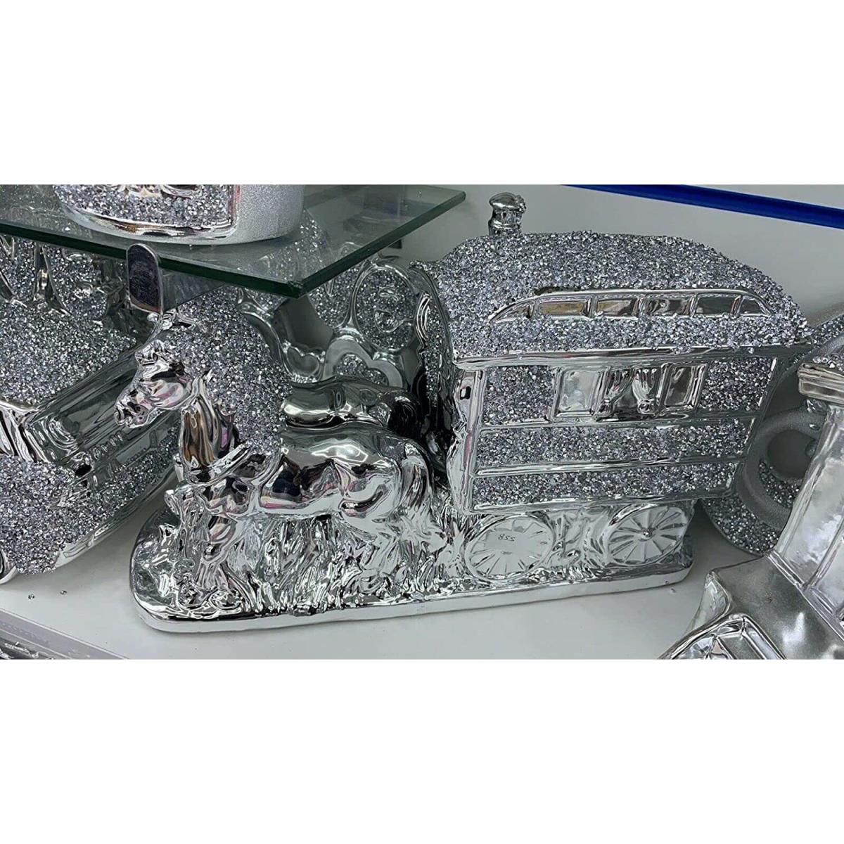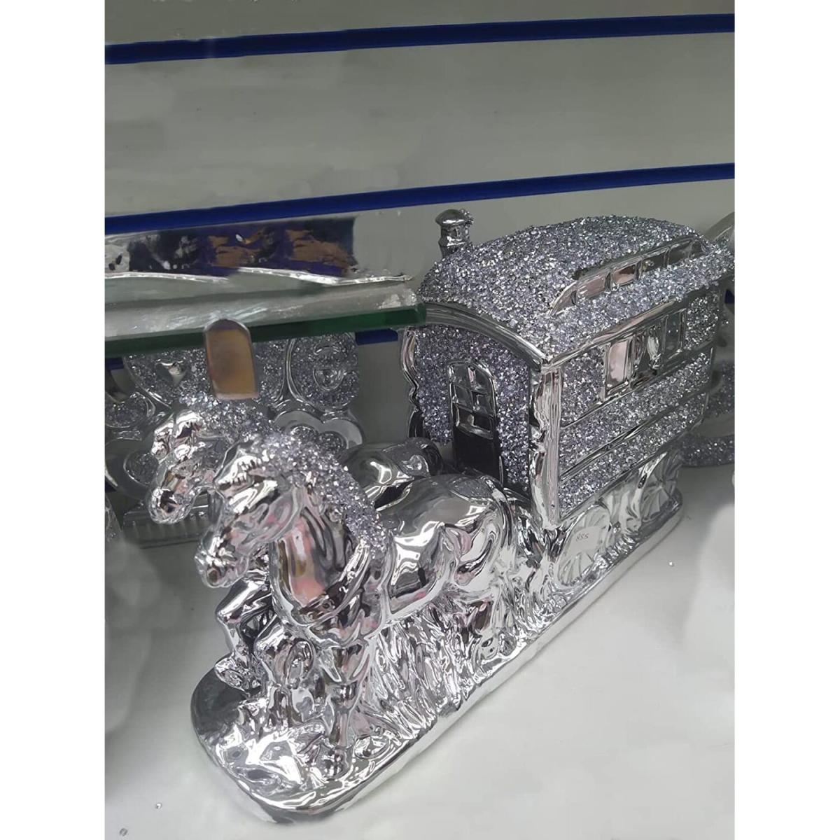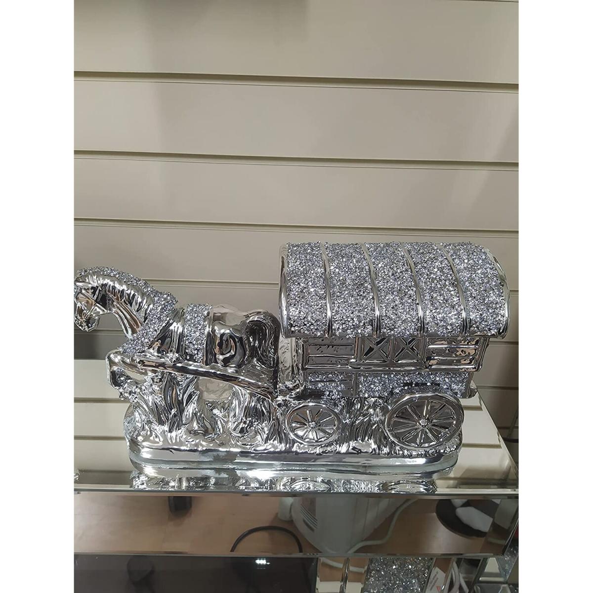Horse With Wagon Gypsy Crushed Diamond Carriage Ornament - Silver