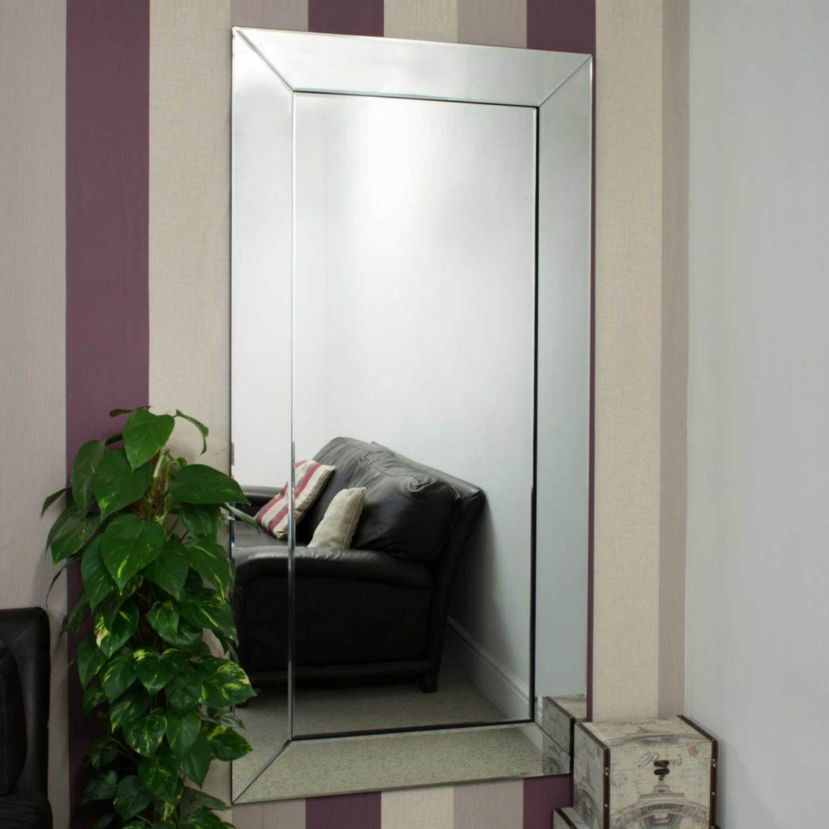 Rectangular modern Venetian Mirror. This mirror has an overall size of 5ft 9 x 2ft 9 174cm x 85cm with a mitred corner detail.