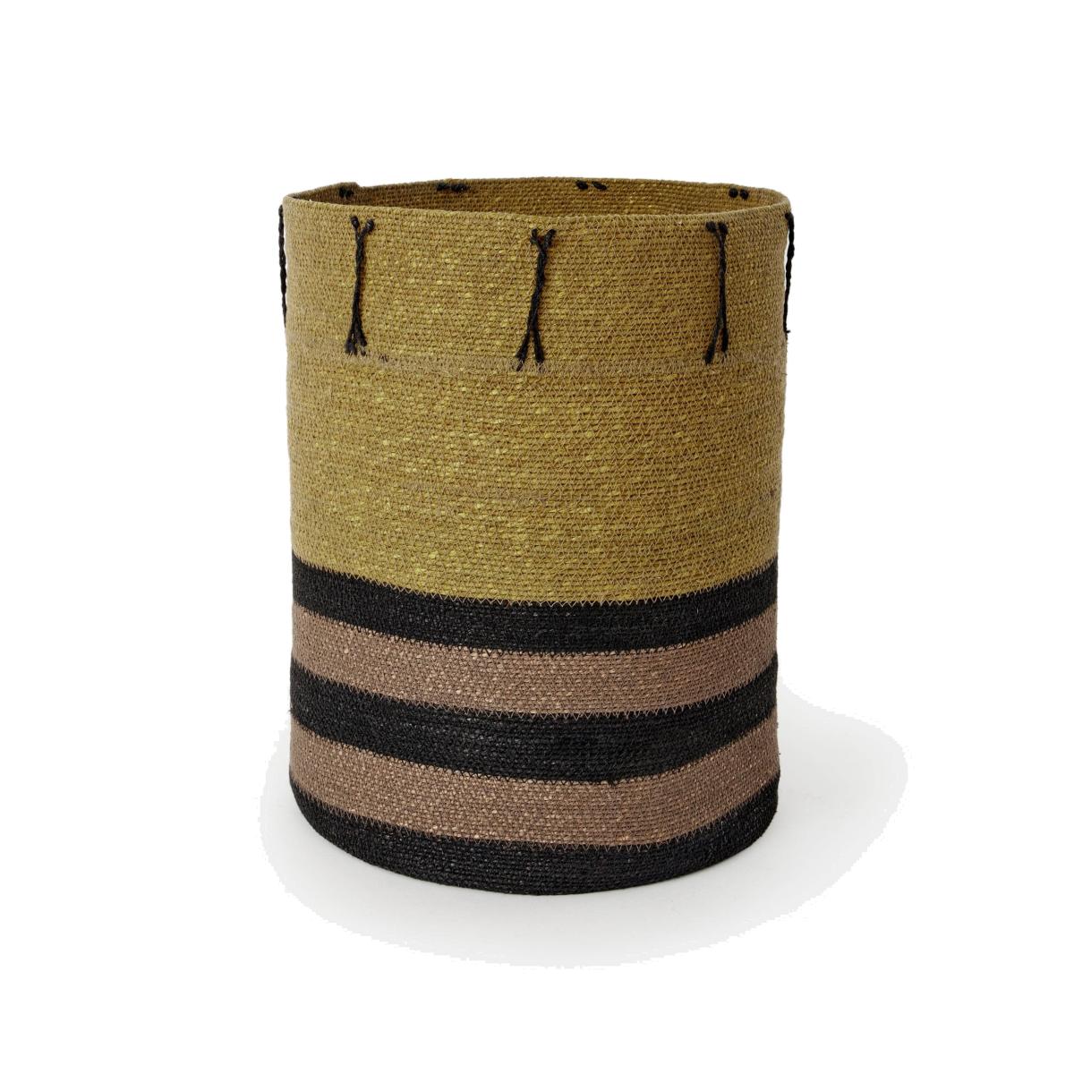 This bright yellow and black basket adds a fun, contemporary touch to any space, especially well-suited to casual or eclectic interiors. I love how its bold colour palette can inject personality into neutral-toned rooms or serve as a statement piece in more colourful environments. It works great as a storage solution in living rooms, playrooms, or even bedrooms for organising throws, magazines, or accessories. To style it effectively, consider pairing it with other natural materials or minimalistic furniture to highlight its pattern and colours. Its practical size and sturdy design make it both functional and visually appealing-perfect for adding a splash of colour with a utilitarian edge.