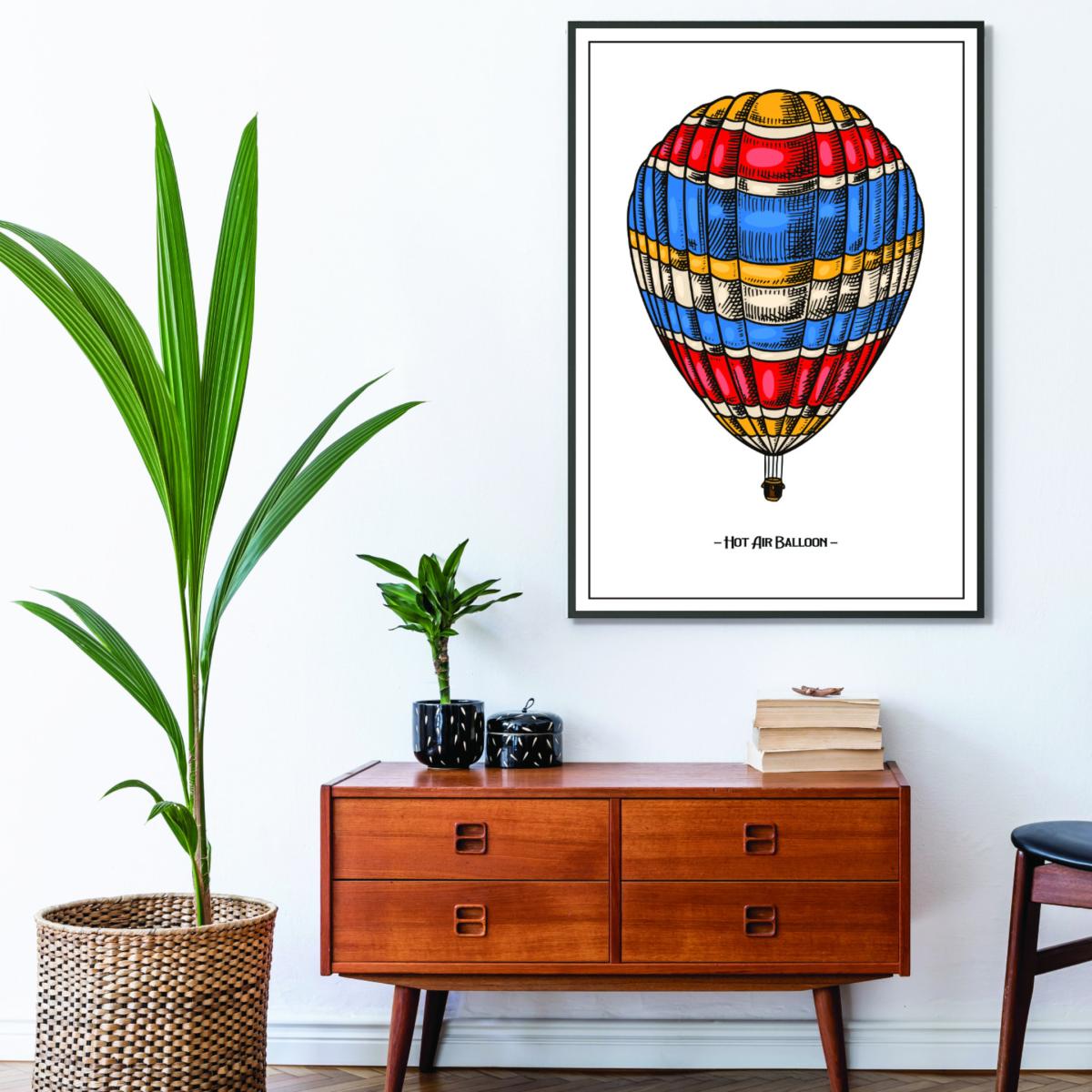 The hot air balloon’s medium size and vibrant colours make it a great statement piece, especially in a nursery, children’s room, or a playful living space. I love how it adds a pop of colour without overwhelming the surroundings. It works well with both contemporary and eclectic interiors, and pairing it with neutral tones allows the colours to really stand out. Practical styling tips include framing it with simple, understated surrounds to let the artwork speak for itself, or grouping it with other travel or adventure-themed pieces for a curated gallery effect. It’s also versatile enough to work as a focal point above a desk or bed, bringing a sense of fun and whimsy to cosy or lively interiors alike.