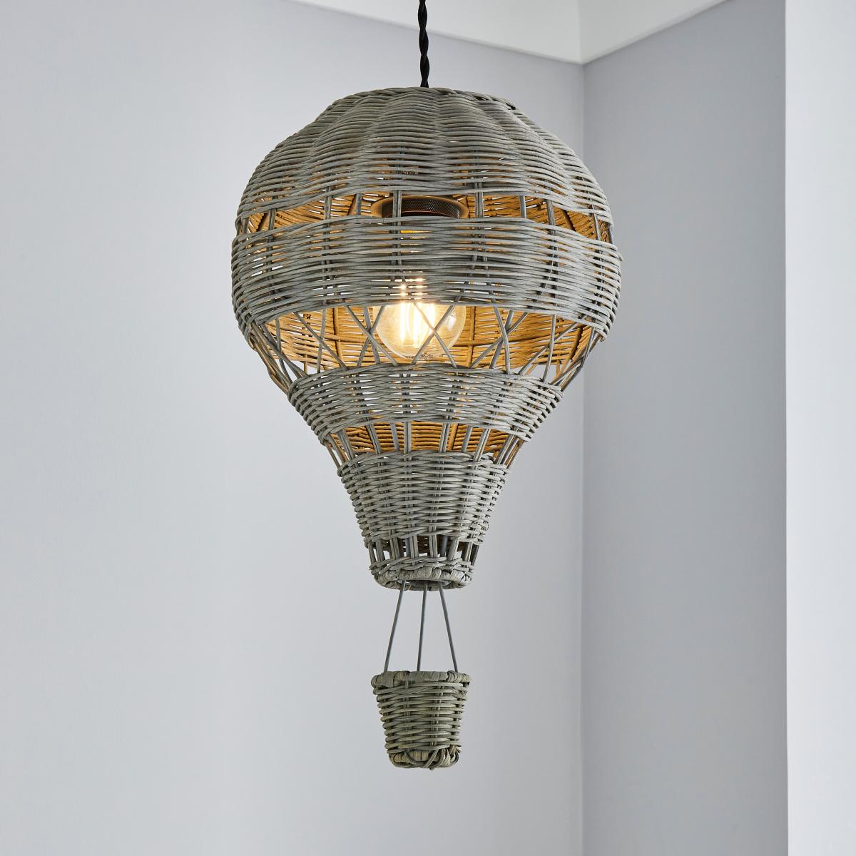 Hot Air Balloon Rattan Easy Fit Pendant Grey