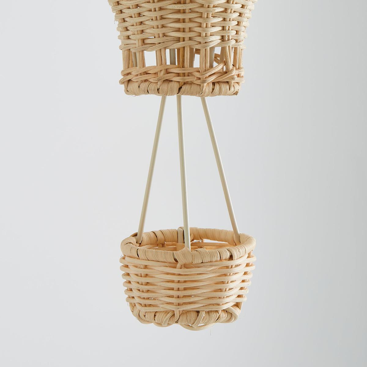 * Hot Air Balloon shaped pendant in real rattan* Perfect for a kids bedroom* Compatible with energy efficient LED lamps and with either BC or ES* Bulb not included* Sustainable Rattan* Easy to fit design compatible with standard ceiling fittings* Other colours available Add a fun statement touch to any room with this unique Hot Air Ballon Light Fitting. Beautifully crafted from rattan, this pendant would look stunning in any kid's room to add a rustic feeling. This pendant is compatible with LED lamps.