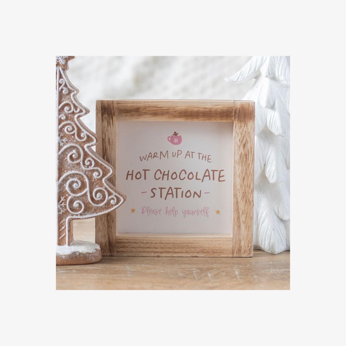 Set up heartwarming hot chocolate stations for friends and family with this 'Hot Chocolate Station' wooden sign. Perfect for warming up after wintery walks or getting cosy to watch a timeless Christmas movie for family film night.