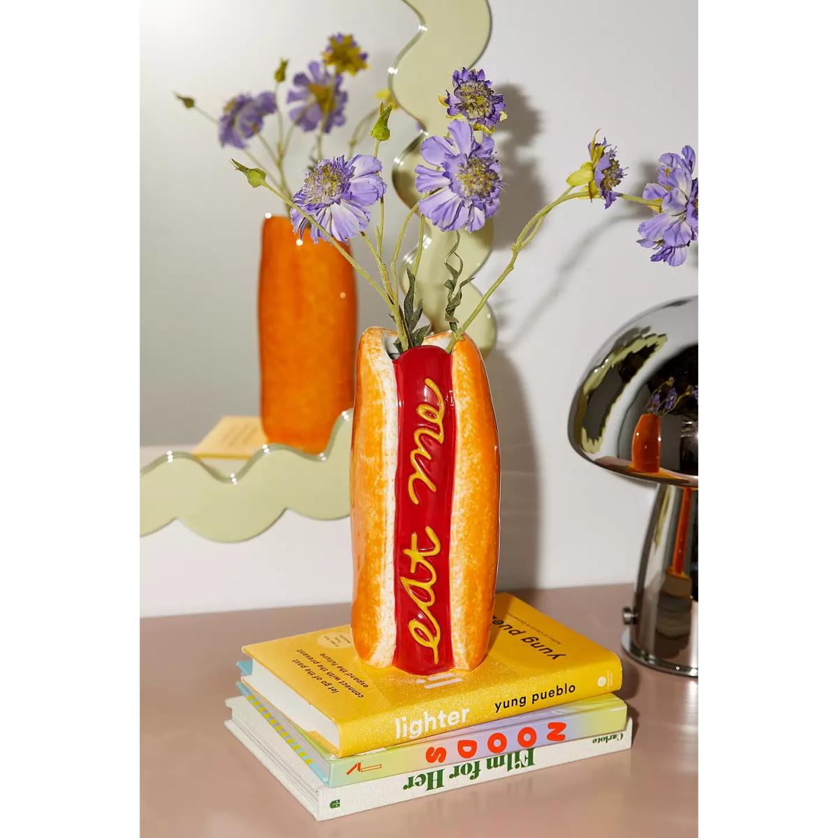 The hot dog vase is fantastic for adding a quirky, playful element to any space. I love how it injects humour and personality into a room, making it a great conversational piece. It works particularly well in eclectic, contemporary interiors or on shelves and side tables that could use a fun upgrade. For styling tips, keep it simple-pair it with neutral-toned flowers or greenery to let the vase be the star, or mix it with other playful decor for a curated, whimsical look. This piece is perfect for those who want to add a touch of fun without overwhelming their aesthetic.