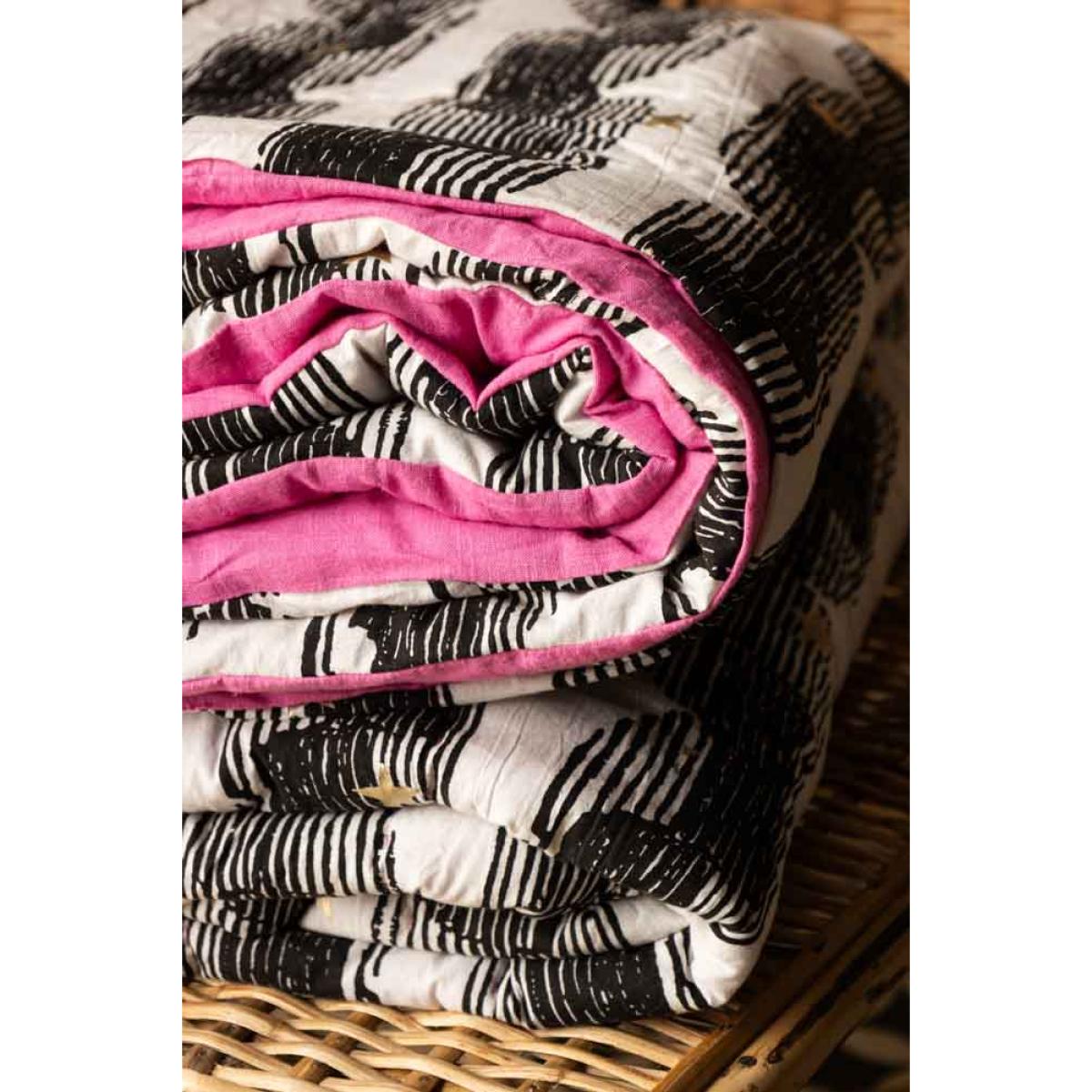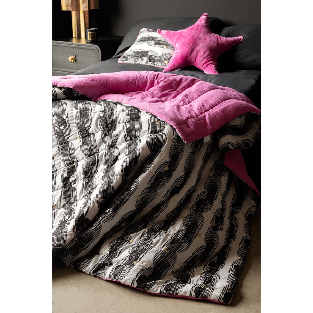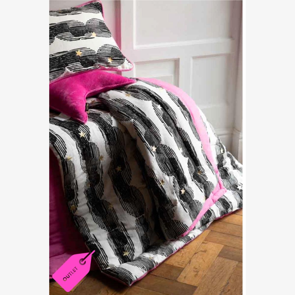 Add a bold burst of personality to your bedroom with our now-discontinued Hot Pink & Gold Star Print Reversible Quilt in King Size. One side features an eye-catching abstract monochrome design sprinkled with playful gold stars, bringing a touch of whimsical elegance to your space. Flip it over to reveal a vibrant hot pink backing that instantly energises any room. Perfect for cosy nights and stylish days, this quilt blends comfort with standout style. Whether you're refreshing your bedding or looking for a versatile throw with flair, this quilt delivers on every level.- Hot Pink & Gold Star Print Reversible Quilt In King-Size - Measures: 250cm x 220cm - Material: Cotton Slub