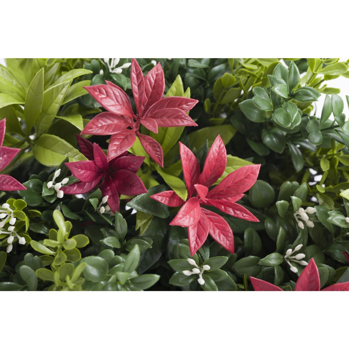 Features we love Ultra-realistic red and green artificial foliage. With enough plants to customise 12 Vistafolia® panels. Easy to install and adjust to modify your design. Maintenance-free with no upkeep or watering neededUV stabilised and; fire rated for your peace of mind All about me. Give your Vistafolia® green wall panels a further enhancement with this vibrant yet invigorating selection of imitation Pieris flowers also known as ‘Forest Flame’ with green fauna. Not only are they eye-catching thanks to the pop of colour but they’ll completely change the look of your installation. Simply slot them into your Vistafolia® panels; they’re easy to remove should you want to rearrange or completely change your colour scheme. There are other colourways and textures available in the Vistafolia® range. Why not install your own LED neon sign over the top? Designed in the UKNeed to know. Packed dimensions. W41 x D29 x H25 cm Packed weight. 3kg Colour. Various greens reds and white Material. Injection moulded Polyethylene (foliage) For use. Indoors and outdoors Assembly. No Installation. Affix to panels accordingly Guarantee. 5-years.