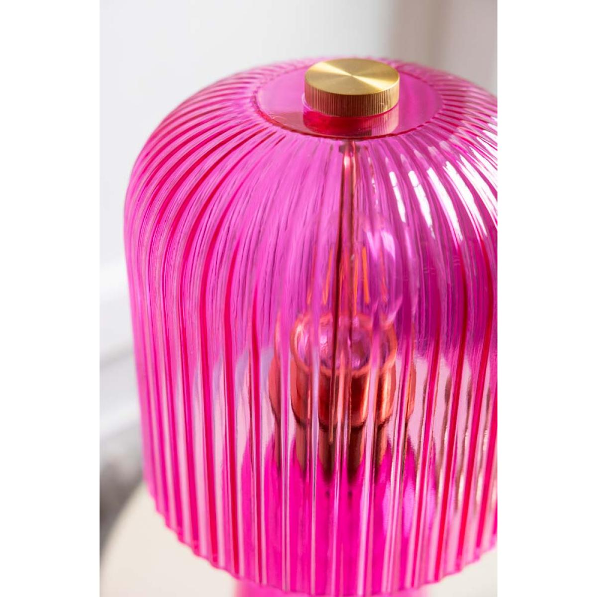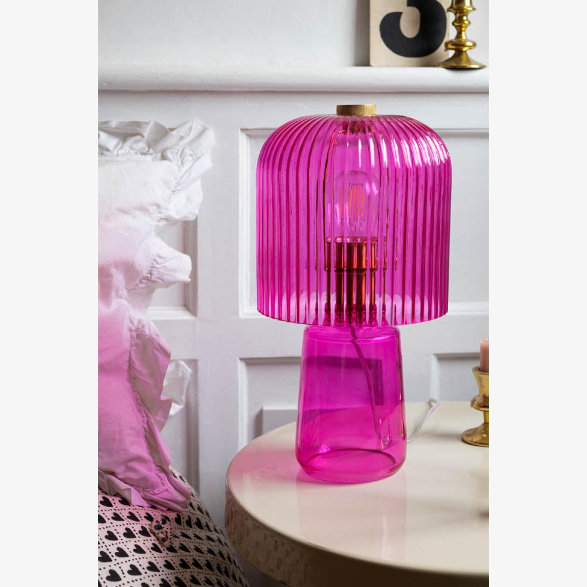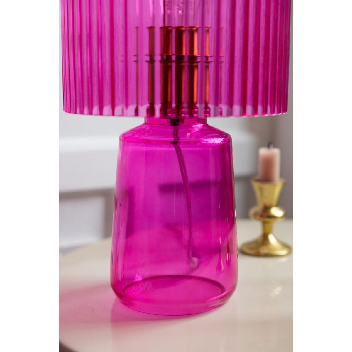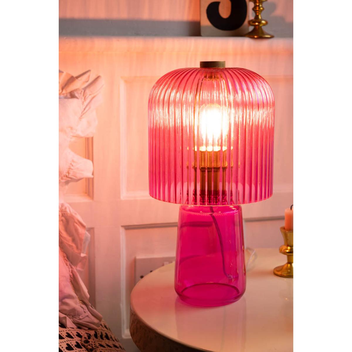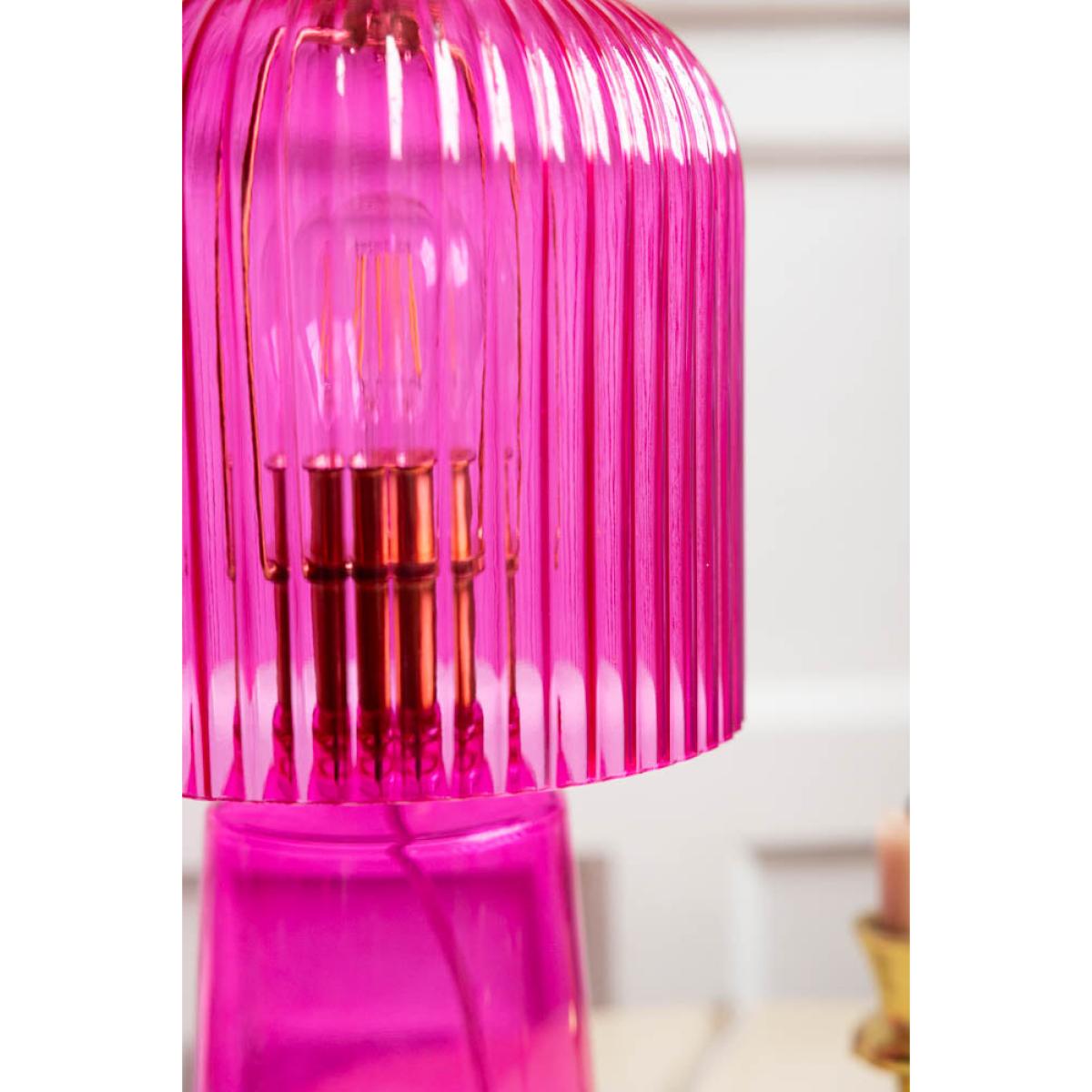 <!--td --> Take a step back into the vibrant era of disco with the Hot Pink Seventies Glass Table Lamp. This stunning lamp boasts a bold hot pink, exuding a retro and colourful vibe that’s perfect for lovers of vintage décor. The unique design of the lamp is reminiscent of the 1970s (groovy, baby!) and brings a splash of colour to any room. Its ribbed glass shade casts a striking glow whilst adding a touch of nostalgia to your home. Whether you love to infuse your home with splashes of bold colour or are a fan of retro aesthetics, the Hot Pink Seventies Glass Table Lamp makes a wow-factor addition to your décor. - Hot Pink Seventies Glass Table Lamp - Measures: H38cm x W20cm- Cable Length:175cm- Material: Glass - Bulb: E27- Bulb Not Included- Rating: IP20