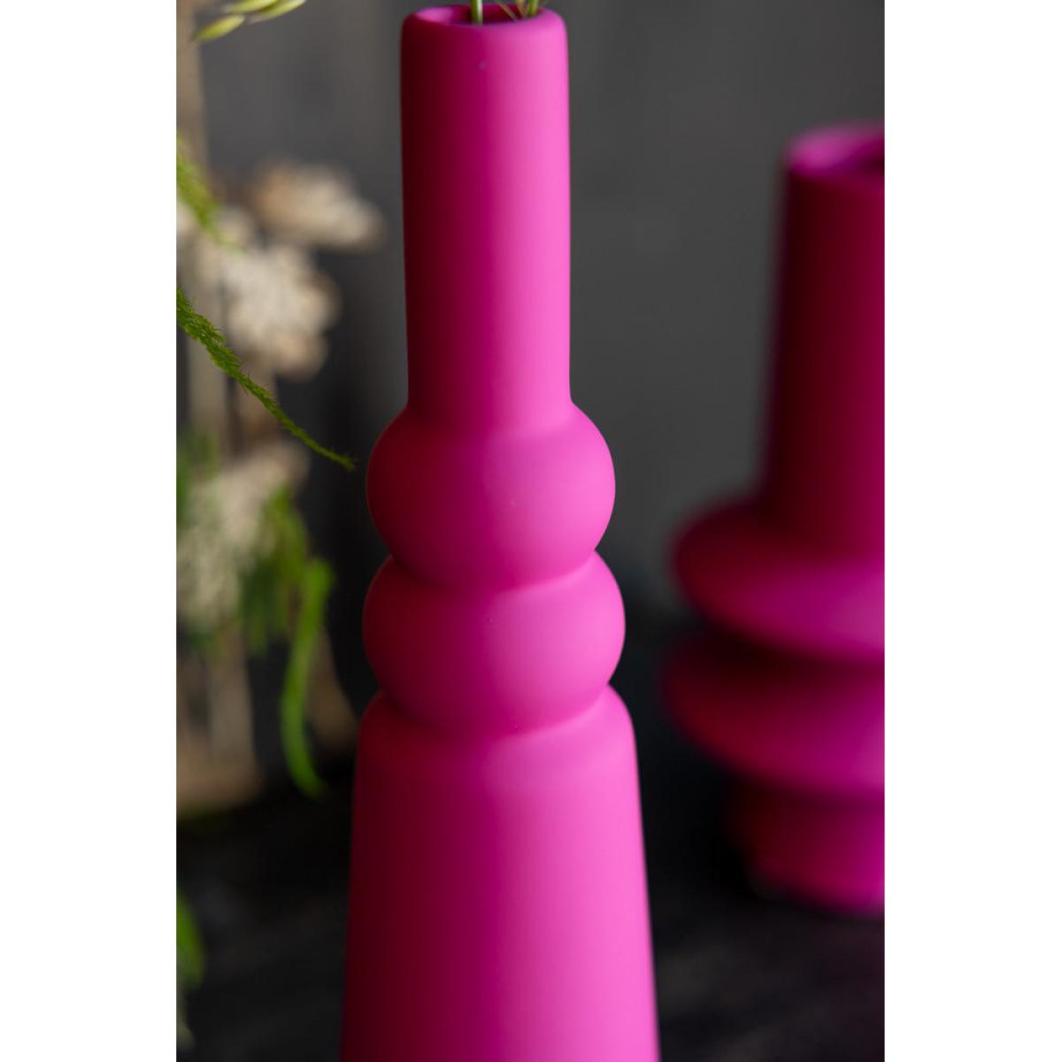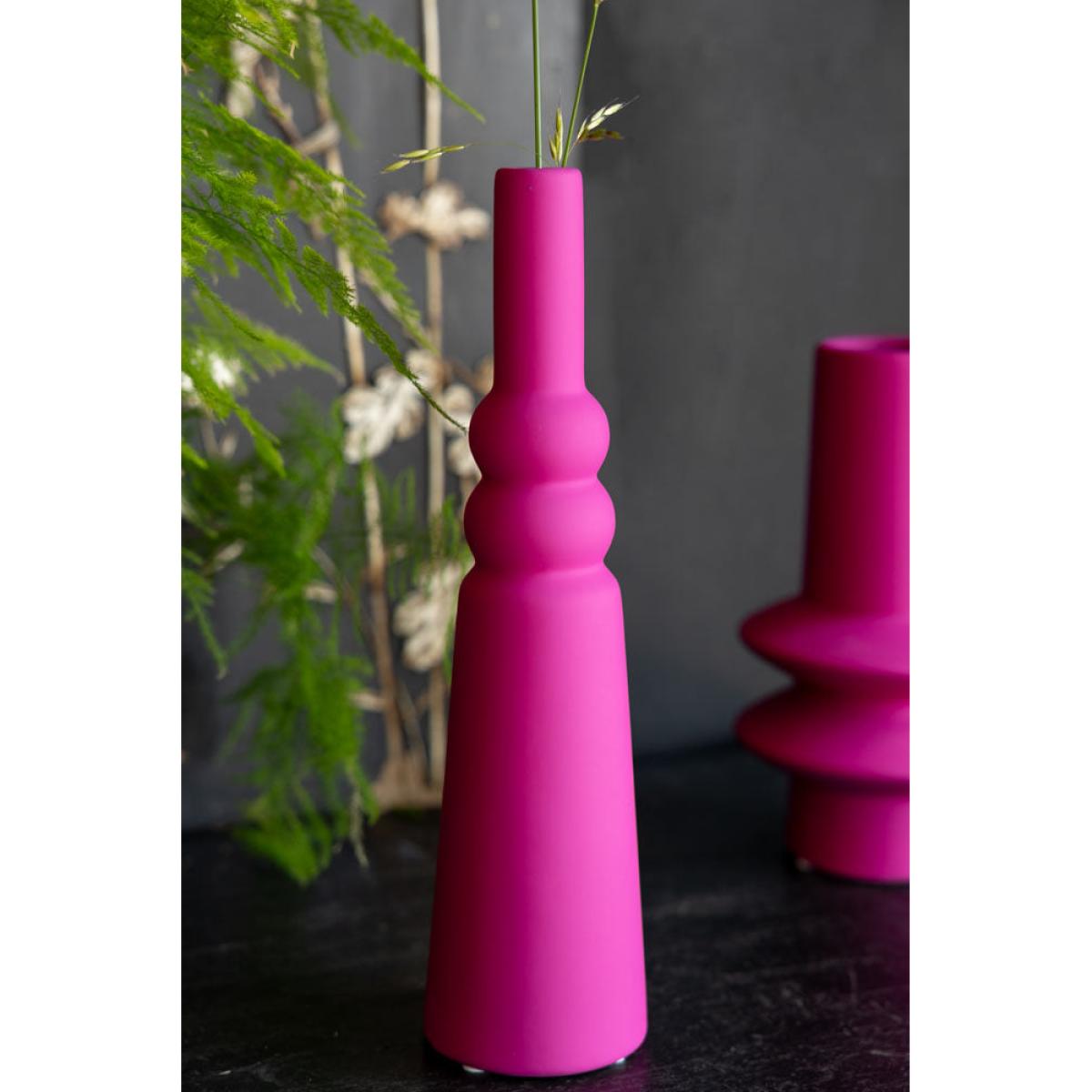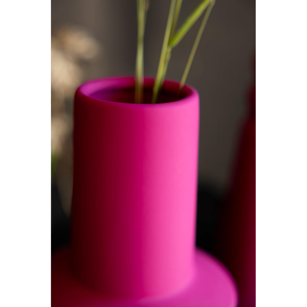 These gorgeous ceramic vases are perfect for brightening up your home, and are versatile enough to take pride of place in the living room, kitchen, bedroom or hallway – wherever you feel needs a little pop of colour! The matt finish serves to highlight the pink beautifully, especially when the vase is full of flowers and/or greenery (green and pink is THE Team RSG colour combo of choice, just by the way). The quirky design gives a graphic appeal that fits beautifully with a modern interiors scheme, yet wouldn’t look out of place against a minimalist backdrop, either – they sing out beautifully against a nude or pale colour palette. It’s your home, so play by your rules – style with confidence and you’ll love the end result, we promise! Joyful pieces to make you smile every day. - Hot Pink Vase - 2 Sizes Available- Material: Stoneware- Measures: Single Stem Vase - H28.5cm x D7.5cm | Short Vase - H22cm x D12cm