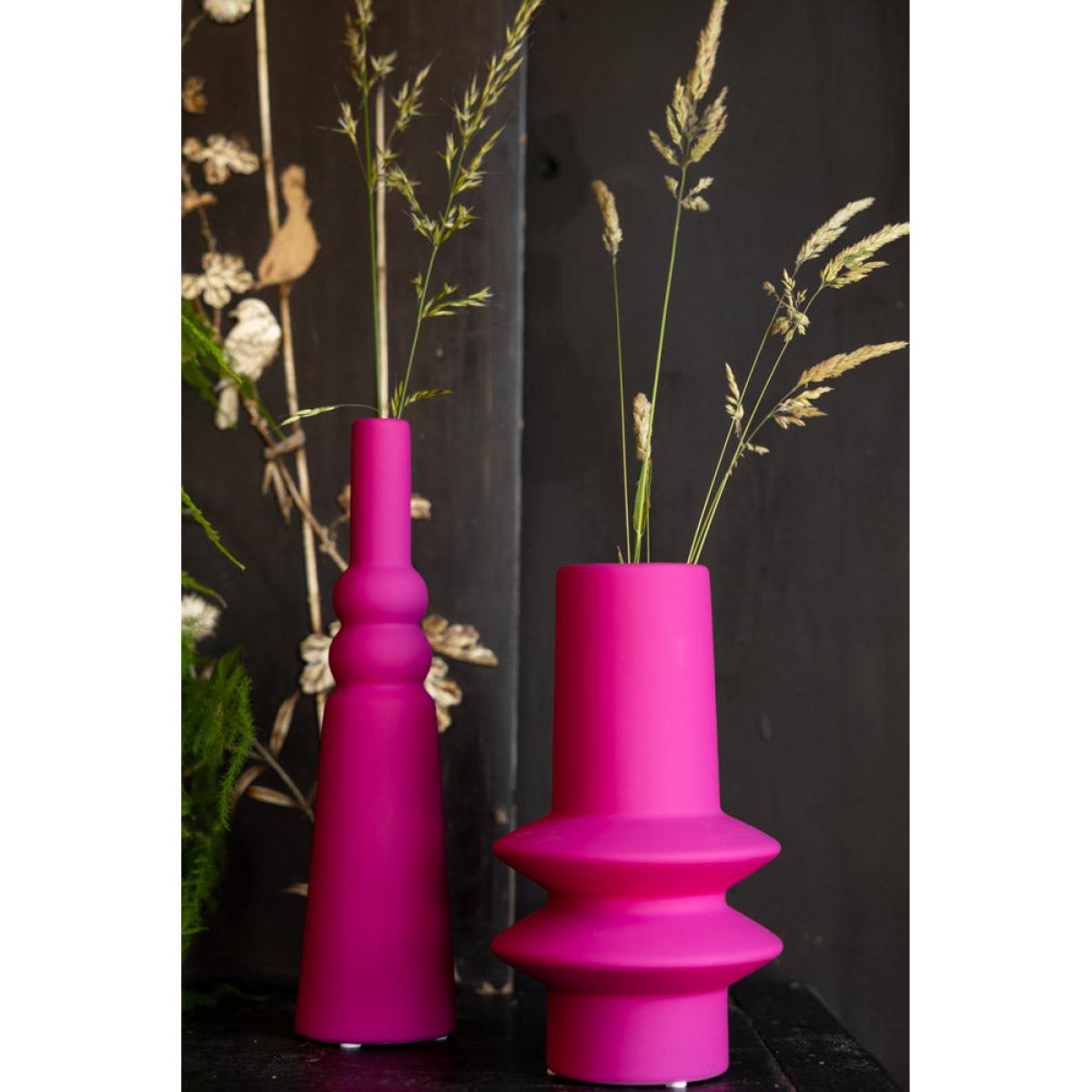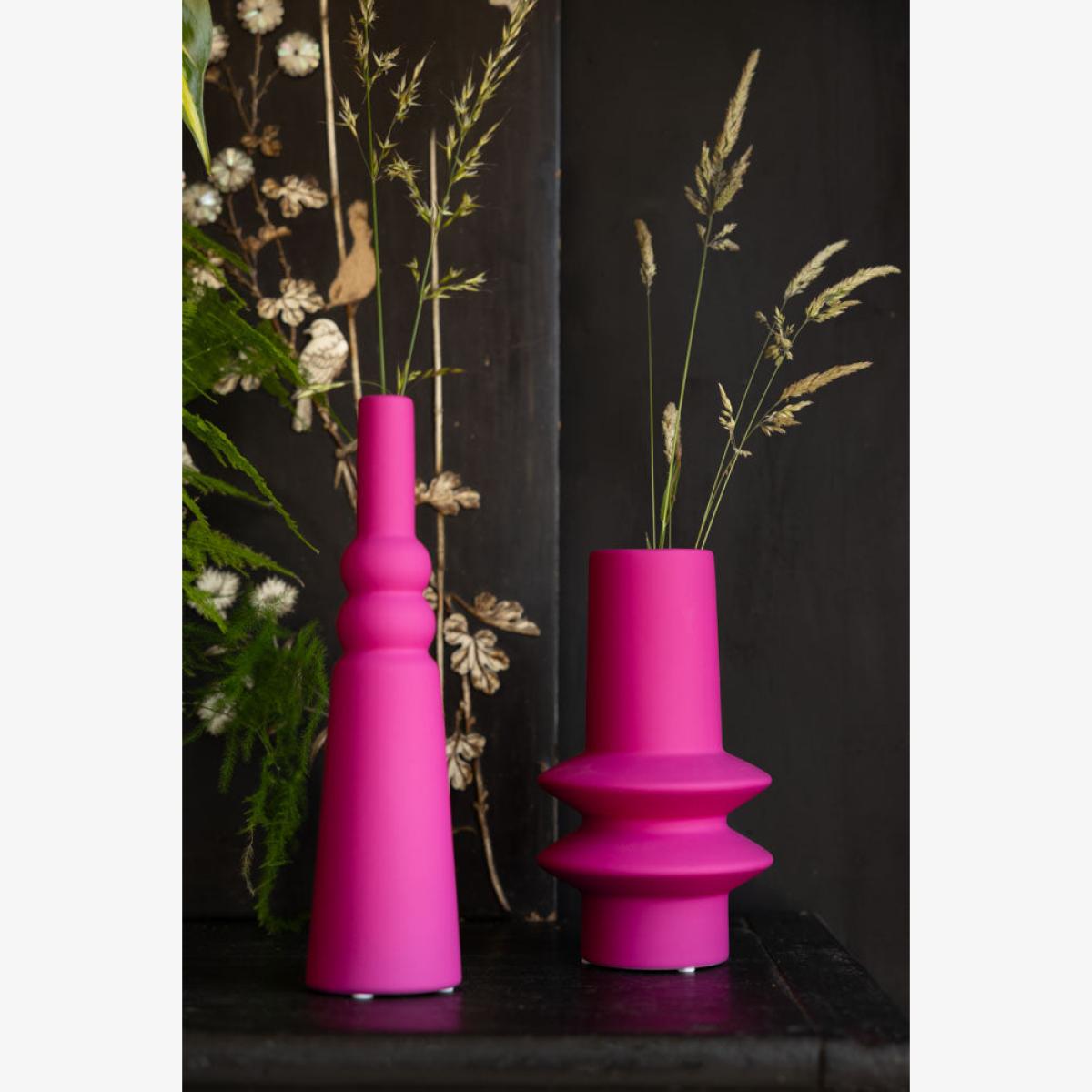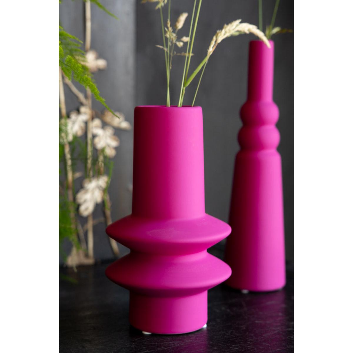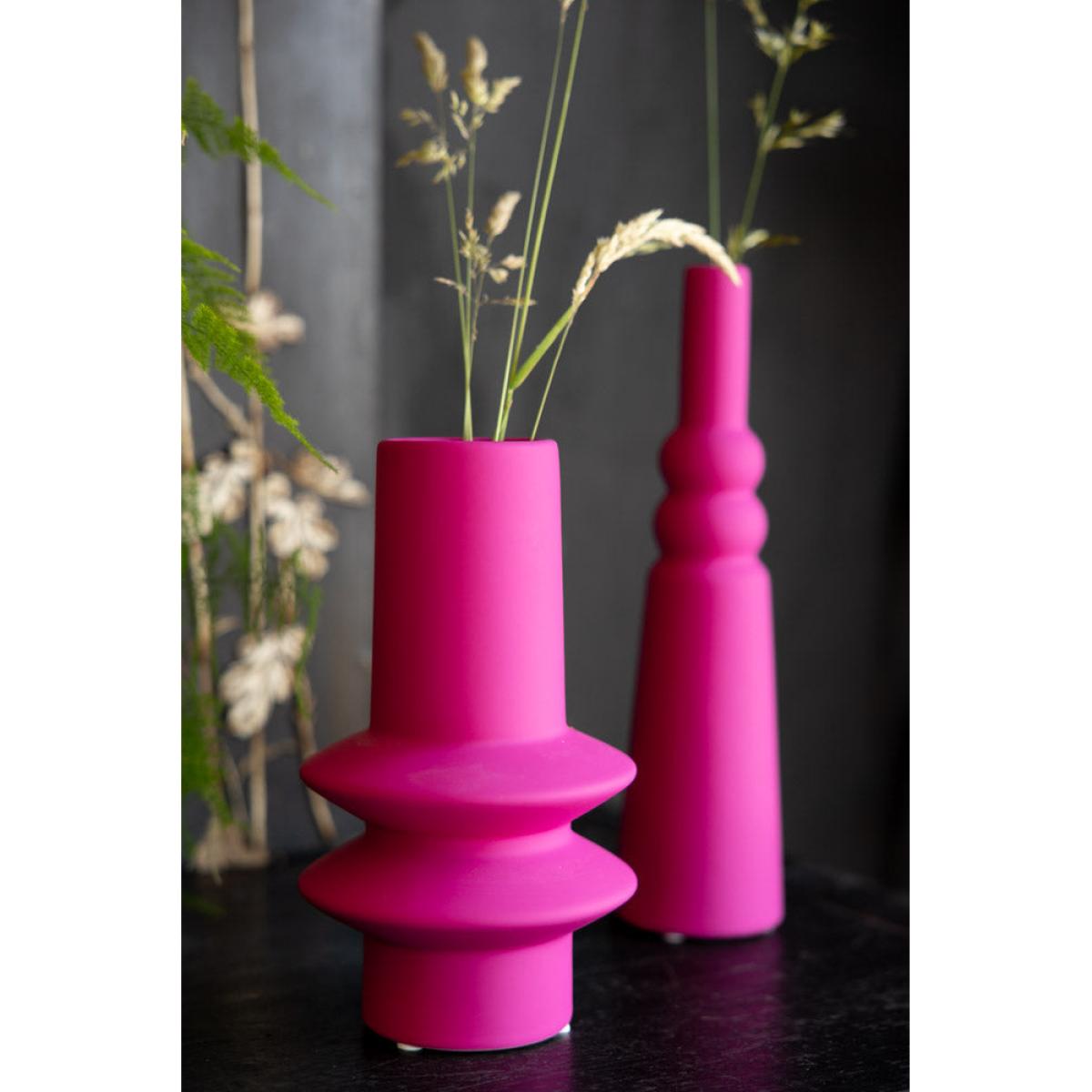 These gorgeous ceramic vases are perfect for brightening up your home, and are versatile enough to take pride of place in the living room, kitchen, bedroom or hallway – wherever you feel needs a little pop of colour! The matt finish serves to highlight the pink beautifully, especially when the vase is full of flowers and/or greenery (green and pink is THE Team RSG colour combo of choice, just by the way). The quirky design gives a graphic appeal that fits beautifully with a modern interiors scheme, yet wouldn’t look out of place against a minimalist backdrop, either – they sing out beautifully against a nude or pale colour palette. It’s your home, so play by your rules – style with confidence and you’ll love the end result, we promise! Joyful pieces to make you smile every day. - Hot Pink Vase - 2 Sizes Available- Material: Stoneware- Measures: Single Stem Vase - H28.5cm x D7.5cm | Short Vase - H22cm x D12cm