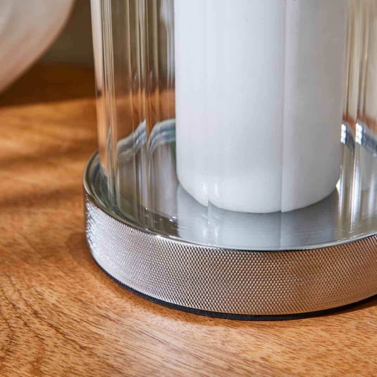 * Sleek chrome base * Adds soft lighting to any room * Ideal for dining tables, shelves or mantels * Available in multiple sizes Designed with a modern edge, this hurricane candle holder brings a sleek finish to your space. The chrome base adds a subtle shine, while the glass surround helps protect the flame and adds height to your display. It’s made for taper candles, making it a great choice for dinner tables, sideboards or mantelpieces. Whether used alone or as part of a set, it adds a warm glow to any room.