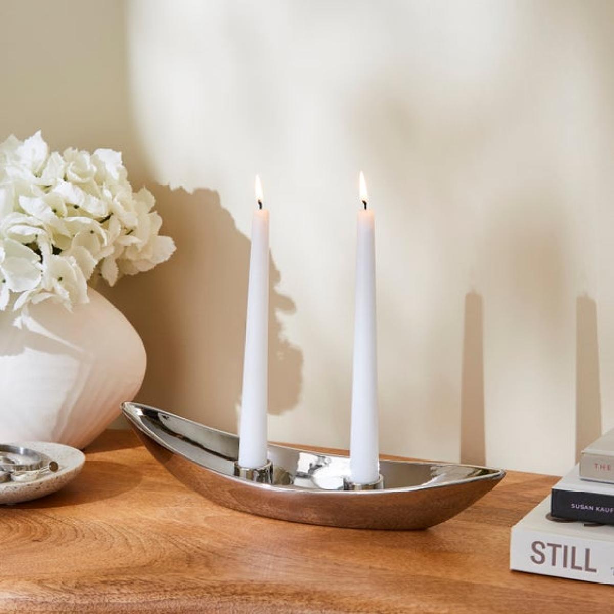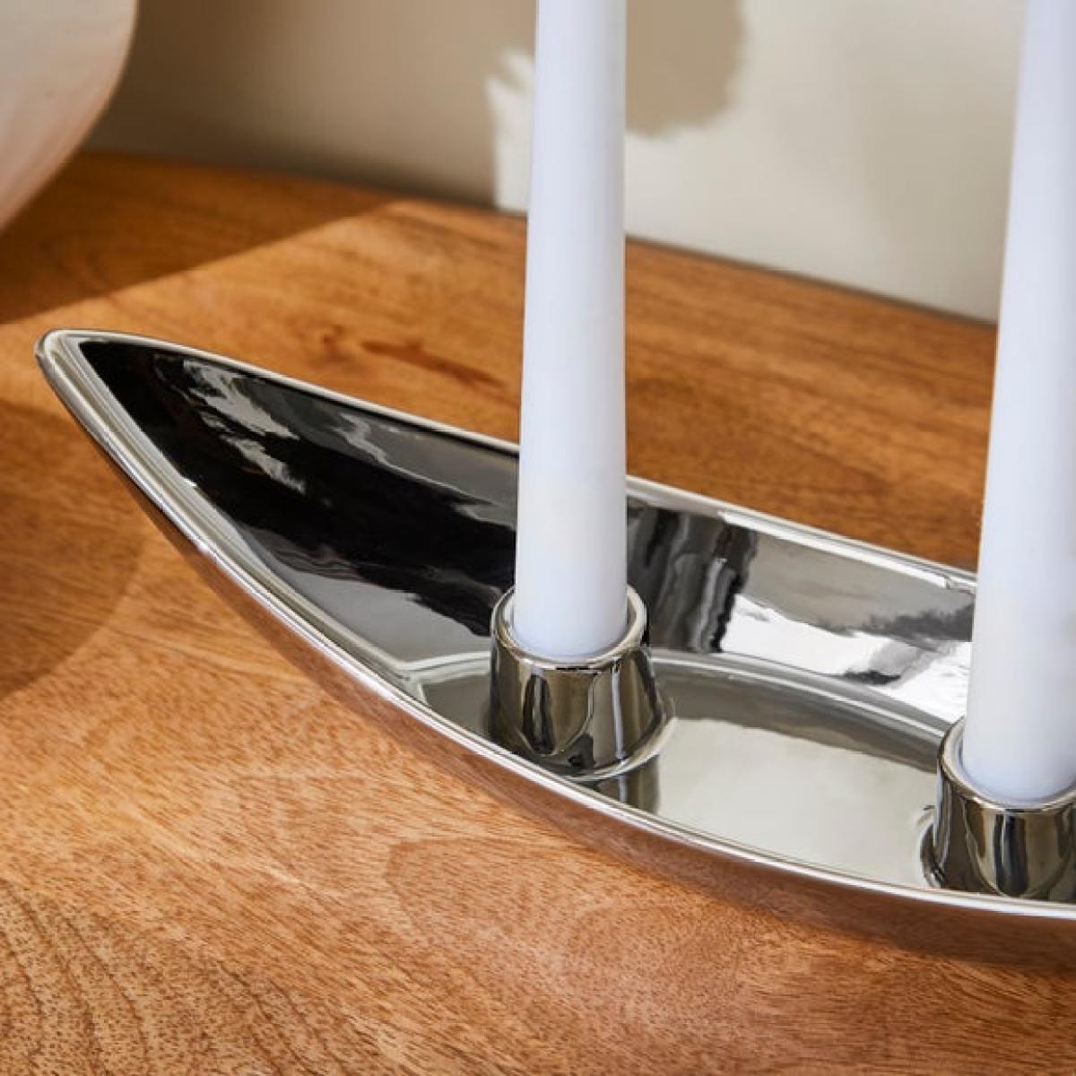 * Chrome finish * Sleek design * Holds multiple taper candles (not included) * Ideal for dining tables, mantels or shelves Designed with a sleek chrome finish, this multi taper candlestick holder brings a modern edge to your table or mantel. Its clean lines and polished surface make it a standout piece, whether lit or left as is. Suitable for taper candles, it’s a simple way to add atmosphere to your evenings. The contemporary design works well with both minimal and layered interiors. Whether you're hosting or winding down, it sets the right tone. A subtle statement that fits right in.