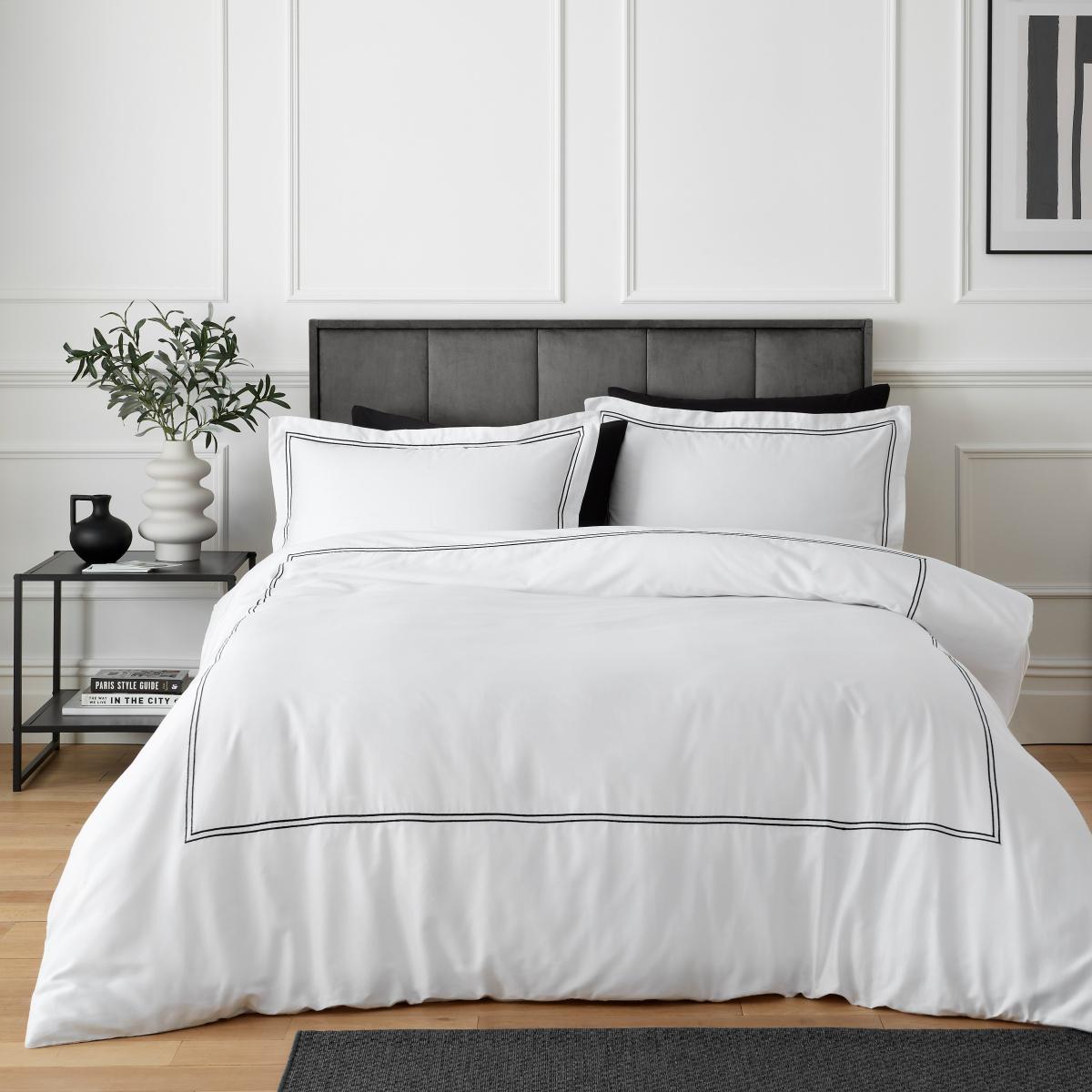 I love this set for its sleek, contemporary vibe and versatile black tone, making it a great choice for modern or minimalist interiors. The sateen stitch adds a subtle touch of elegance without overpowering the overall look. It works well in monochrome schemes or as a grounding element in more layered styles, pairing nicely with both textured throws and colourful accessories. Practical styling tips include layering with crisp white sheets and adding metallic or matte accent cushions for contrast. It's also ideal for creating a refined yet low-maintenance bedroom aesthetic that feels effortlessly chic.