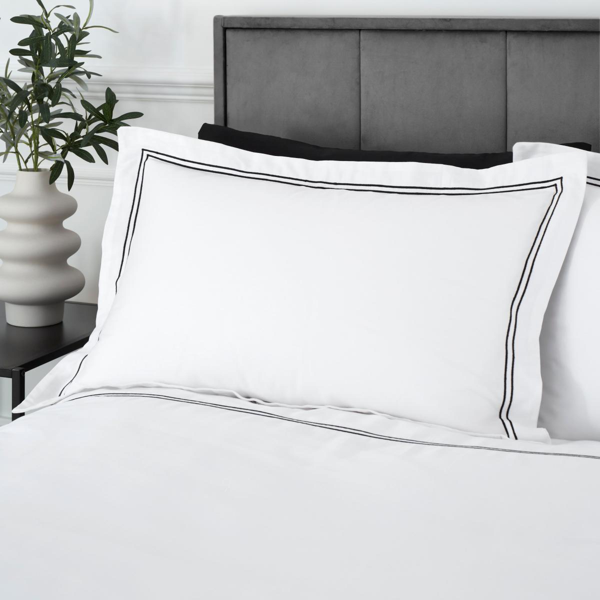 Hotel Double Sateen Stitch Black Duvet Cover & Pillowcase Set Black