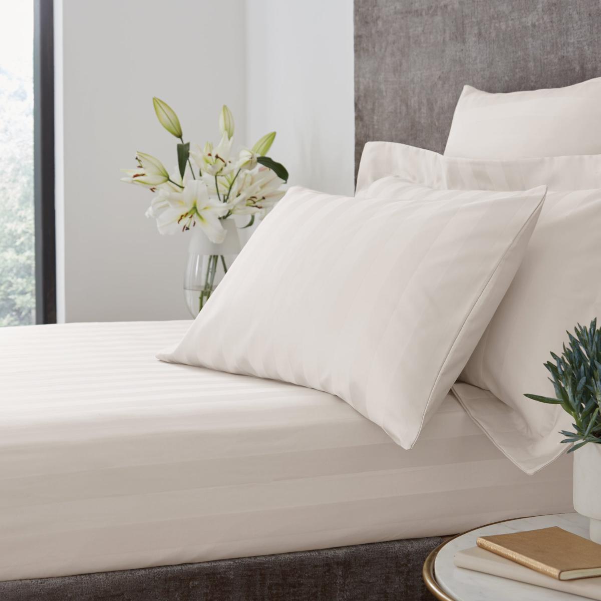 Hotel Egyptian Cotton 230 Thread Count Stripe Fitted Sheet Cream