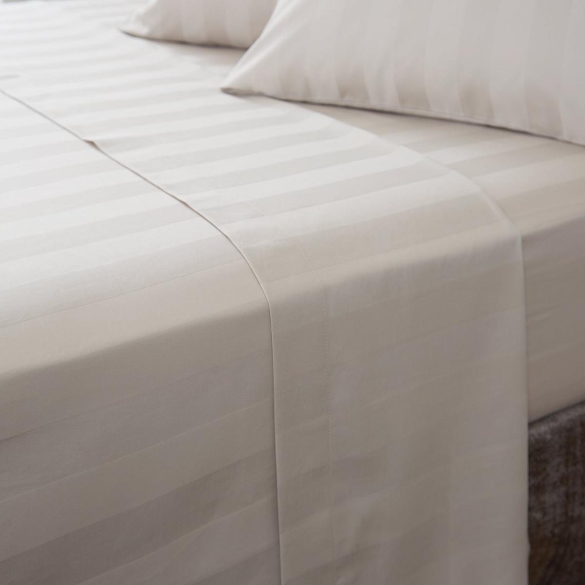 Hotel Egyptian Cotton 230 Thread Count White Stripe Flat Sheet Brown and White