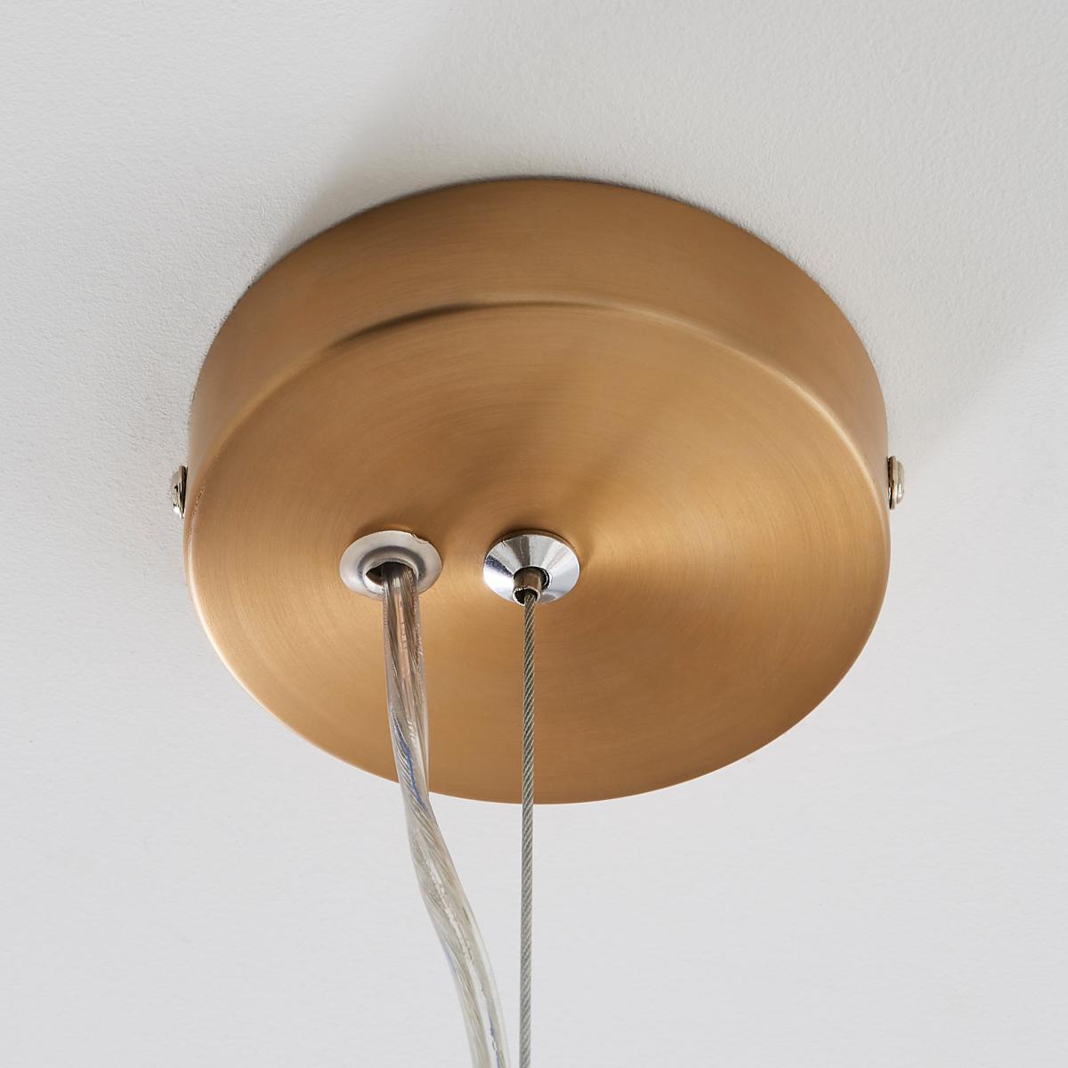 I love this chandelier for its sleek, modern take on classic design, especially with its striking gold finish which adds a touch of luxury. It works particularly well in minimalist or contemporary interiors, balancing simplicity with a subtle statement piece. Practical styling tips include hanging it in a dining room or a large living space where its open, airy design can be appreciated without overwhelming the room. To maximise its impact, keep surrounding decor understated and pair it with warm lighting or neutral tones, allowing the gold accents to truly stand out and bring warmth to the space.