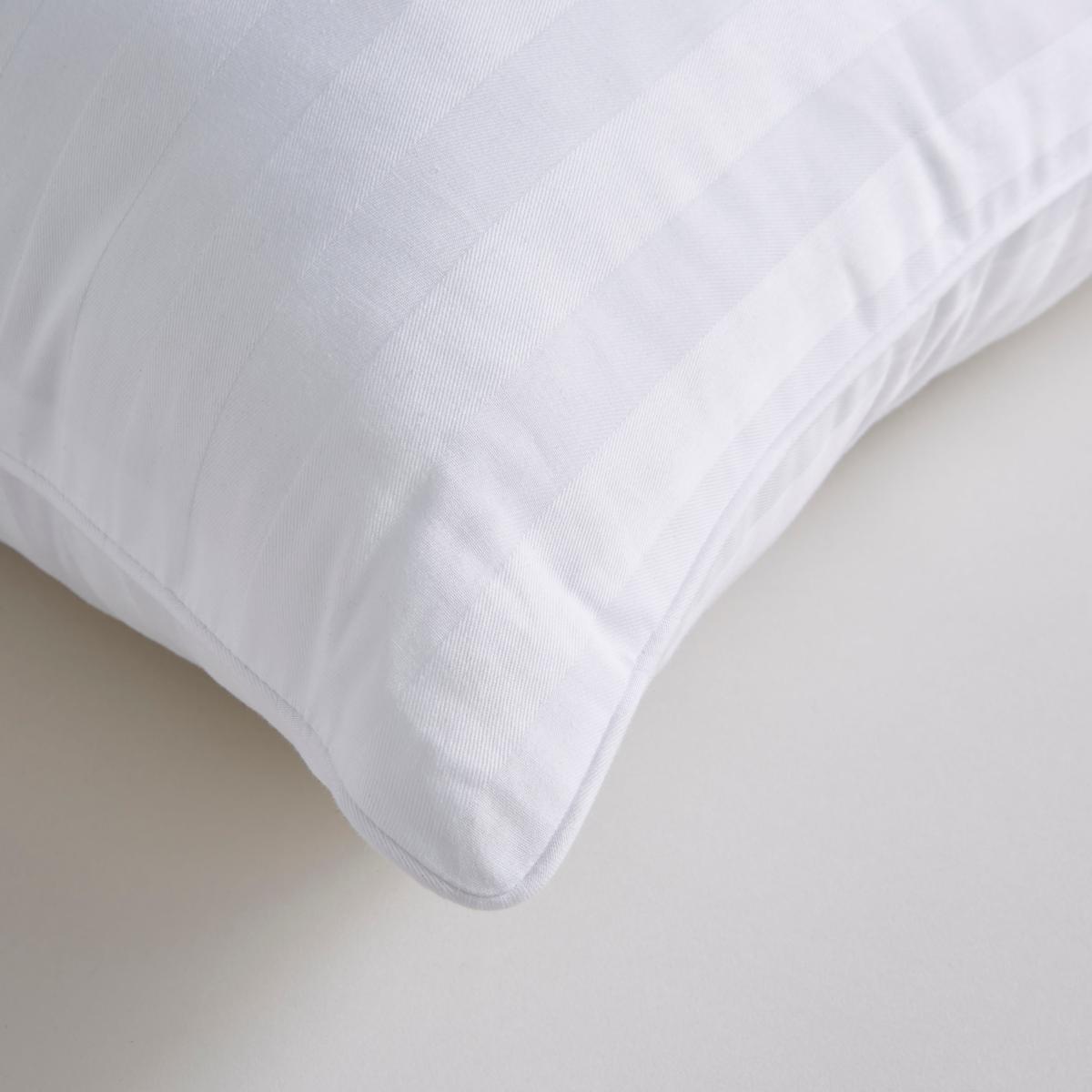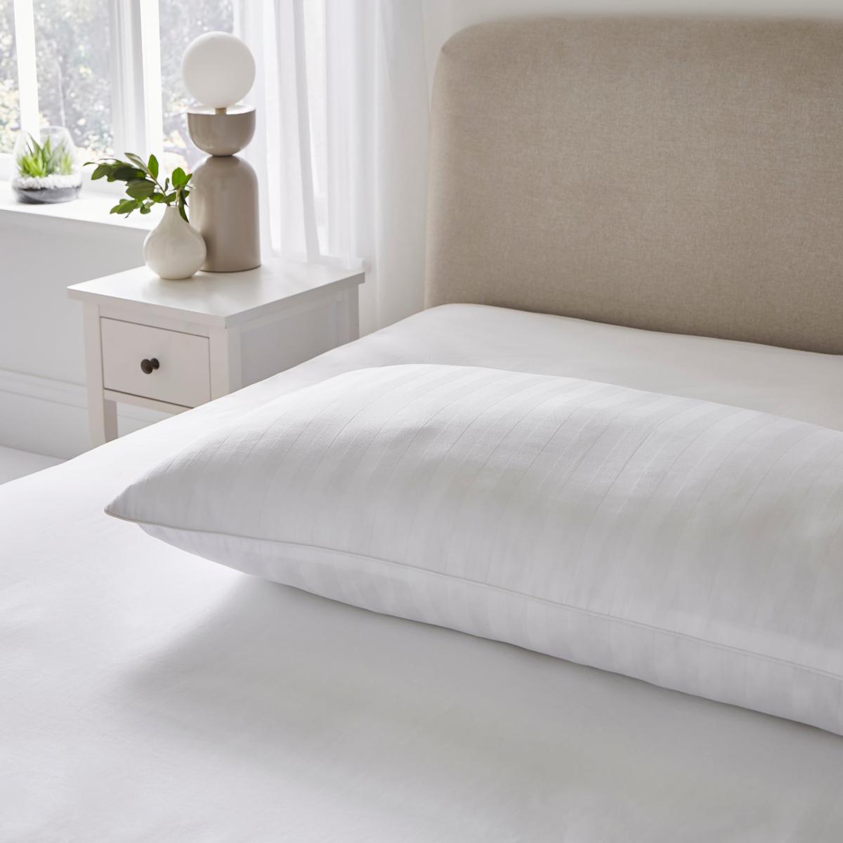 * Polyester Fibre Filling* Firm Support* Ideal for Side Sleepers* Extremely durable premium quality* Crisp 200 thread count 100% Cotton Cover* Machine Washable, Tumble dry on a low heat setting Elevate your sleep experience with the Hotel Luxury Cotton Kingsize Pillow, designed for those who demand superior support and style. Featuring a 200-thread count cotton cover and filled with soft polyester, this pillow offers firm support for side sleepers and back sleepers alike. The oversized design provides enhanced comfort, while the durable, machine-washable cover ensures longevity. A luxurious addition to your bedding, it’s perfect for both sleeping and relaxing. This collection is verified by OEKO-TEX and independently tested for harmful substances as well as manufactured using sustainable processes under socially responsible working conditions.