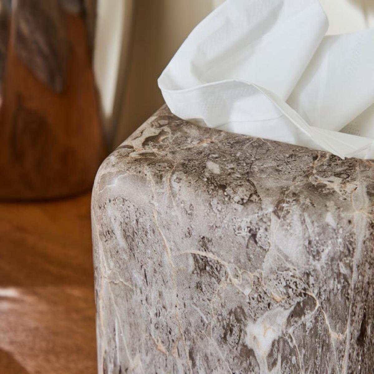 * Practical yet decorative * Marble-effect design * Matches a variety of interior styles Keep tissues close to hand without compromising on style. This tissue box features a contemporary marble print that blends in beautifully with modern interiors. It’s a simple way to add a polished touch to your bathroom, bedroom, or living space. A neat solution that keeps things tidy whilst looking stylish.