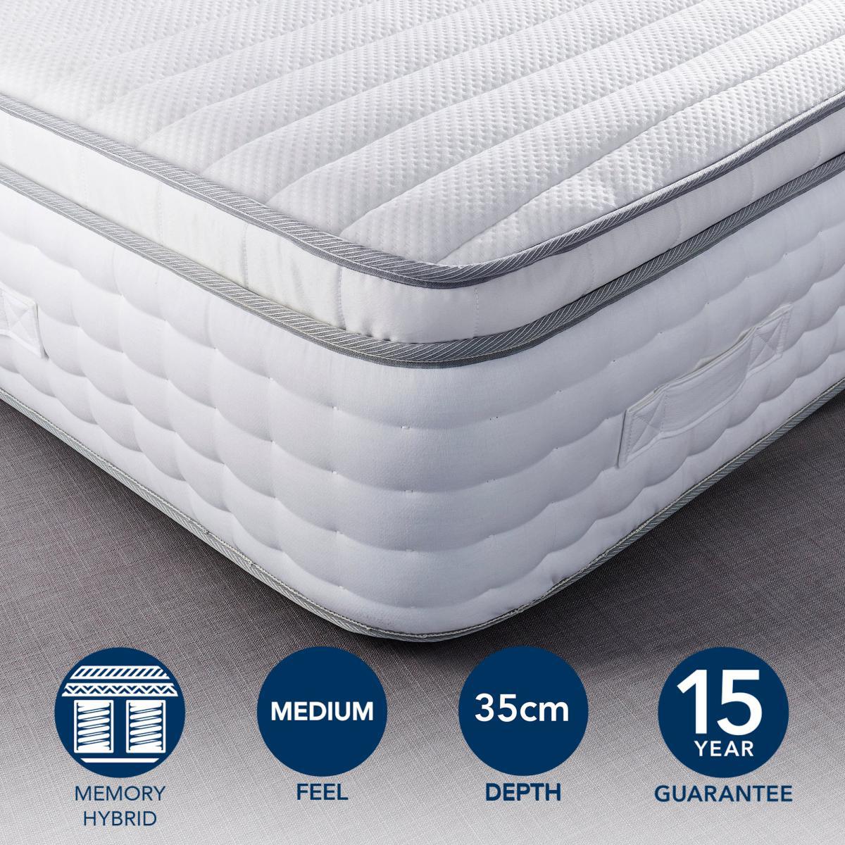 * 2000 Pocket Sprung* 2” Memory Foam Pillow Top – added cushioning layer moulds to your body’s shape* Medium Support – ideal for front and back sleepers* 100% Cotton Cover – added breathability* Eco-polyester Filling – made from recycled polyester fibres* Quilted top with reinforced side support – prevents collapsing at the side for a greater sleeping area* 8 x Handles for even easier moving* 15-Year Guarantee* Handmade in the UK Treat yourself to hotel luxury in your own home with our Hotel Memory Foam Top Mattress. With a 2-inch memory foam pillow top, this mattress moulds perfectly to your shape providing a body-hugging, cushioning feel. Featuring 2000 springs encased in their own pockets, this mattress responds to your body’s movements and reduces movement disturbances such as your partner rolling over in the night. This mattress has a comfort grading of medium making it ideal for front and back sleepers. Wrapped in a 100% cotton cover and finished with 8 air vents for improved breathability and pressure regulation, this Hotel mattress is both comfortable and sustainable in design featuring an eco-polyester layer made from recycled polyester fibres that acts as an extra padding layer between you and the springs. To keep your mattress perfectly formed, the edge is designed with reinforced side support to ensure the edges don’t collapse and to increase your sleeping area. This mattress is complete with 8 handles to make moving it easier than ever. Due to its memory foam pillow top, this mattress should not be flipped. Instead, you should regularly turn your mattress to help prolong its life and redistribute the support. This product is supplied by NBF Approved Members, who have been independently audited against a set of strict criteria and standards set by the National Bed Federation. Contains non-toxic Certipur approved foam. Need to throw out your old mattress first? View our information on [mattress recycling and collections.](https://www. dunelm. com/info/about/mattress-and-furniture-recycling)* For health and hygiene reasons, we are unable to offer refunds or exchanges on Mattresses unless they are returned unused and in their original packaging. For more information please see our Easy Returns section.