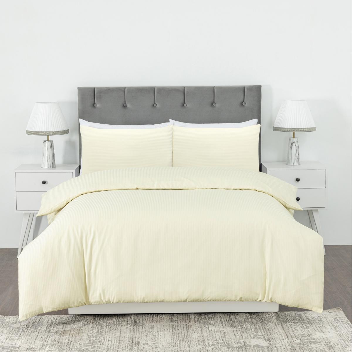 Hotel Quality Stripe Duvet Cover Set Cream - Cream / Double / 2 Pillowcases