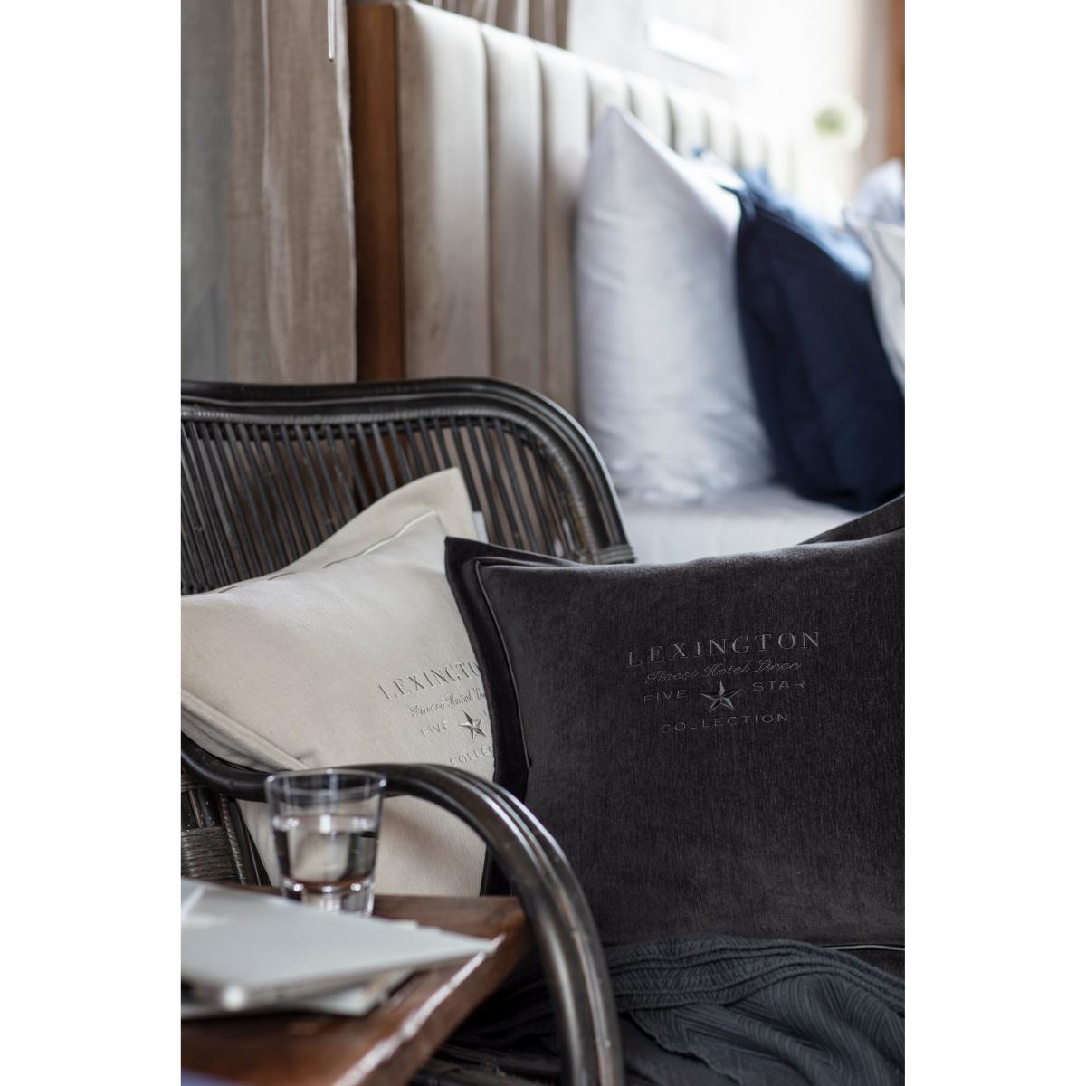 Hotel Velvet pillowcase 50x50 cm from Swedish Lexington in soft cotton velvet is a luxury pillowcase with the brand's logo embroidered on the front and a decorative flange around the edges. On the back there is a zipper for ease of use when fitting the cover. The Hotel Velvet pillowcase is available in several colours and serves as a lovely interior detail on the bed or sofa.