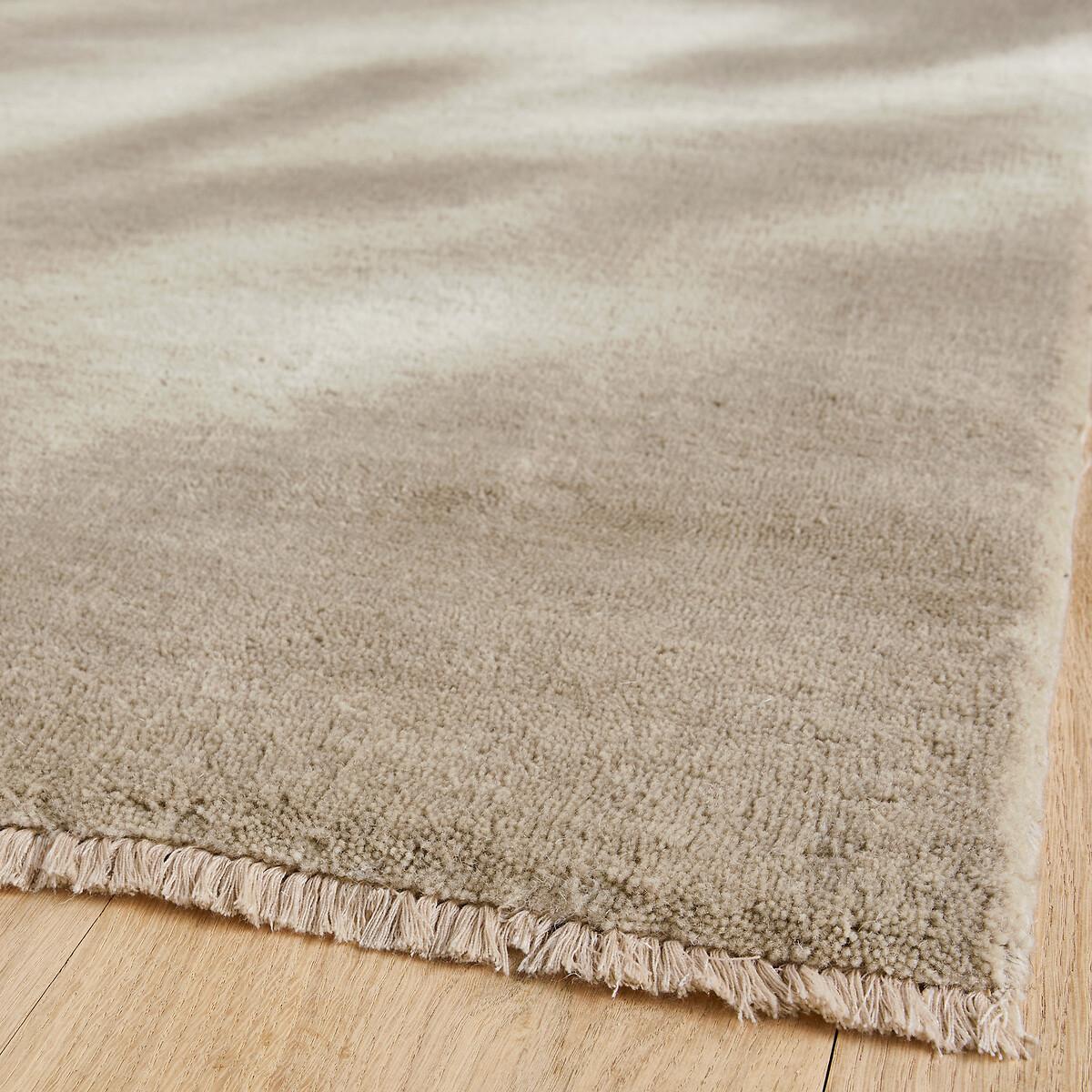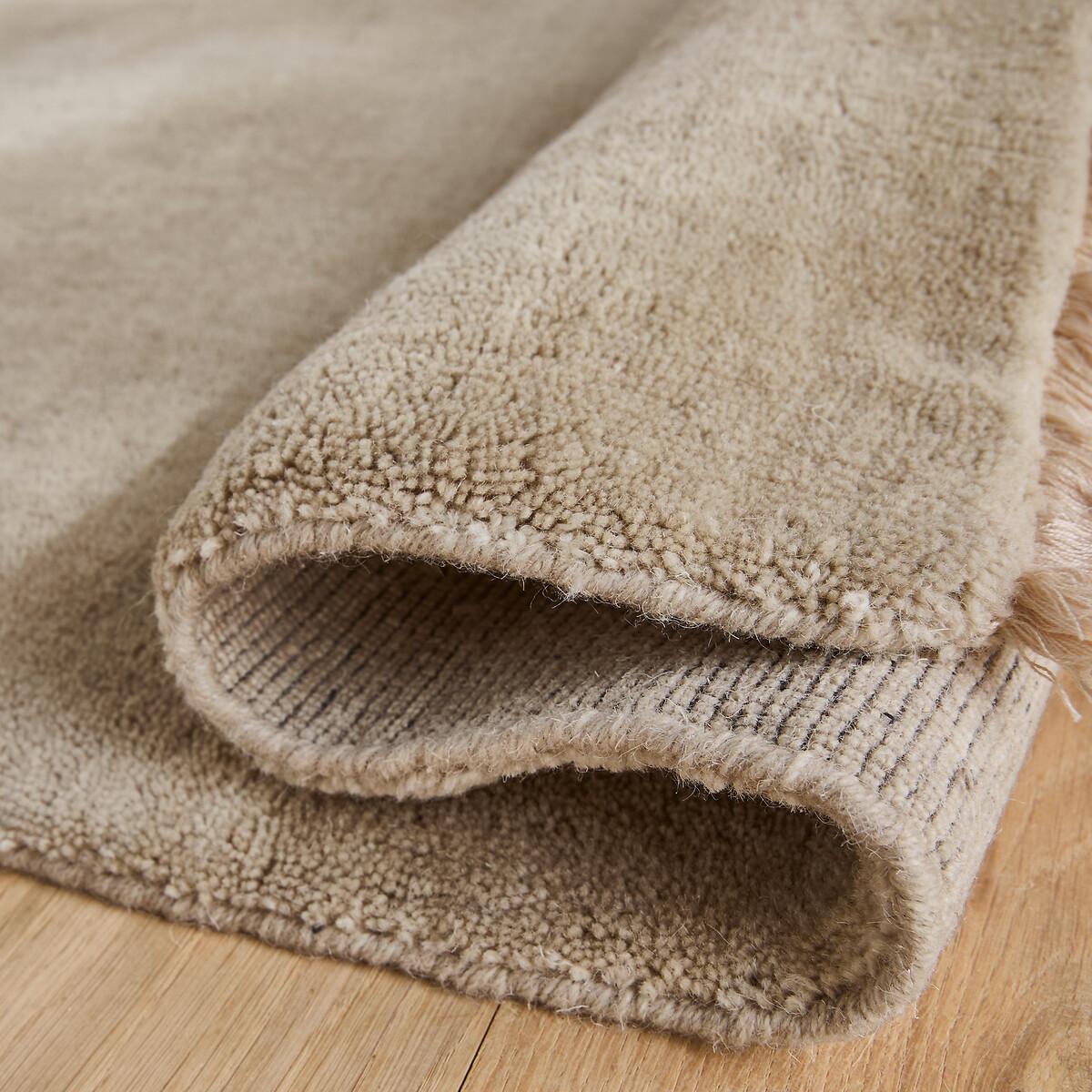 This contemporary rug has a velvety appearance. Hotep is made of high quality wool, hand-knotted with the greatest dexterity by Indian artisans. This dense, warm rug with subtle shades is easy to place in any room. Designed in generous dimensions, the Hotep XL Rug is ideal for even the largest spaces. A sophisticated piece by AMPM.Each rug is handmade in India by artisan weavers, masters of an ancestral skill handed down from generation to generation. Knotted, tufted or hand-woven, our rugs perpetuate traditional weaving techniques that bear witness to a culture dating back thousands of years. Genuine decorative elements offering thermal and acoustic insulation, they add a unique and warm touch to your home furnishings. Product Details • 77% wool, 14% lyocell, 9% other fibres • Craftsmanship: hand-knotted • Weight: 3000g/m² • Thickness: 13-14mm. Quality Info • Handcrafted, each piece is unique and has its own shades of colour that may differ from one rug to another. • Wool is a warm and comfortable fibre. Care Advice • Some materials such as wool are very fibrous and you can actually observe a piling during the first weeks of use: this is normal, as the rug "unburdens" by rejecting its excess fibres. Remove lint as much as possible by hand and definitely do not use the vacuum cleaner in brushing mode because this has the effect of pulling the fibres and tearing them out.. The pilling will improve over time. • We advise you to vacuum it very little the first month and then to vacuum it without rubbing too much, always without using the brush. • Remove stains immediately with a clean, damp cloth. • Dry clean recommended. Dimensions • Width 240 x Length 330cmDelivery:. Available for home delivery.
