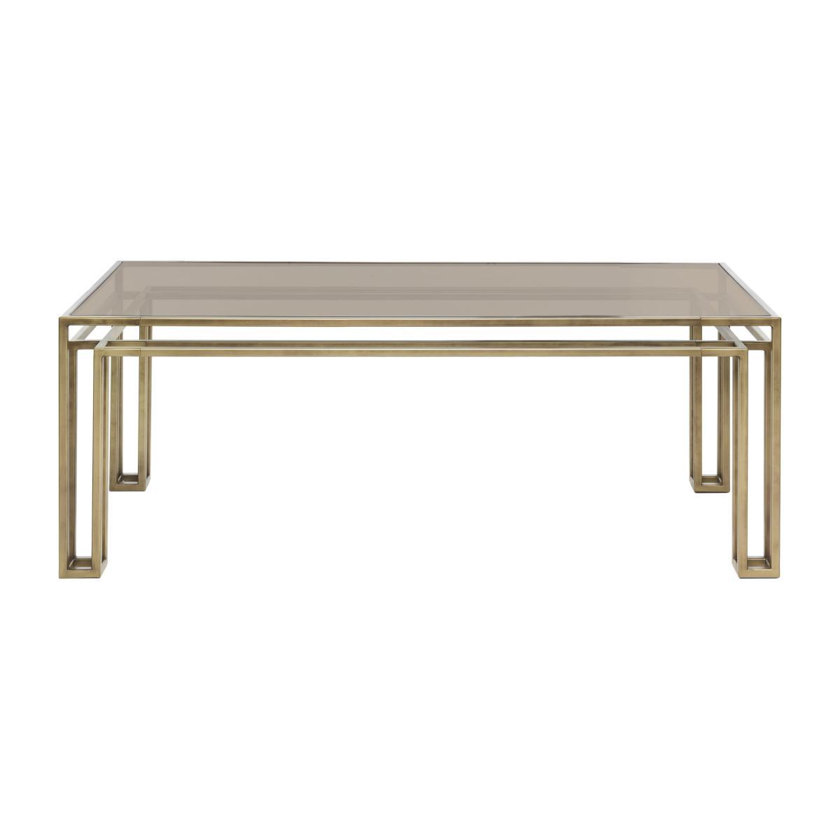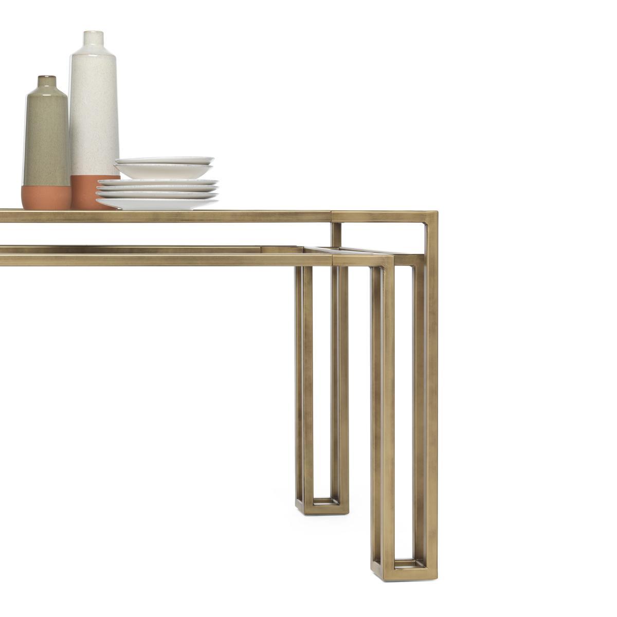 An extremely graphical and unique look for this table that will not go unnoticed! The Hotline table is made up of a large glass top resting on a wide and airy structure. Consisting only of material on the edges, this base seems to be the materialisation of a sketch in bold lines. A table with an imposing presence, but, paradoxically, extremely stripped back! Made of golden metal (patinated bronze finish) and smoked transparent glass, Hotline offers wonderful dimensions (90 x 200 cm). It can comfortably seat up to 8 guests.