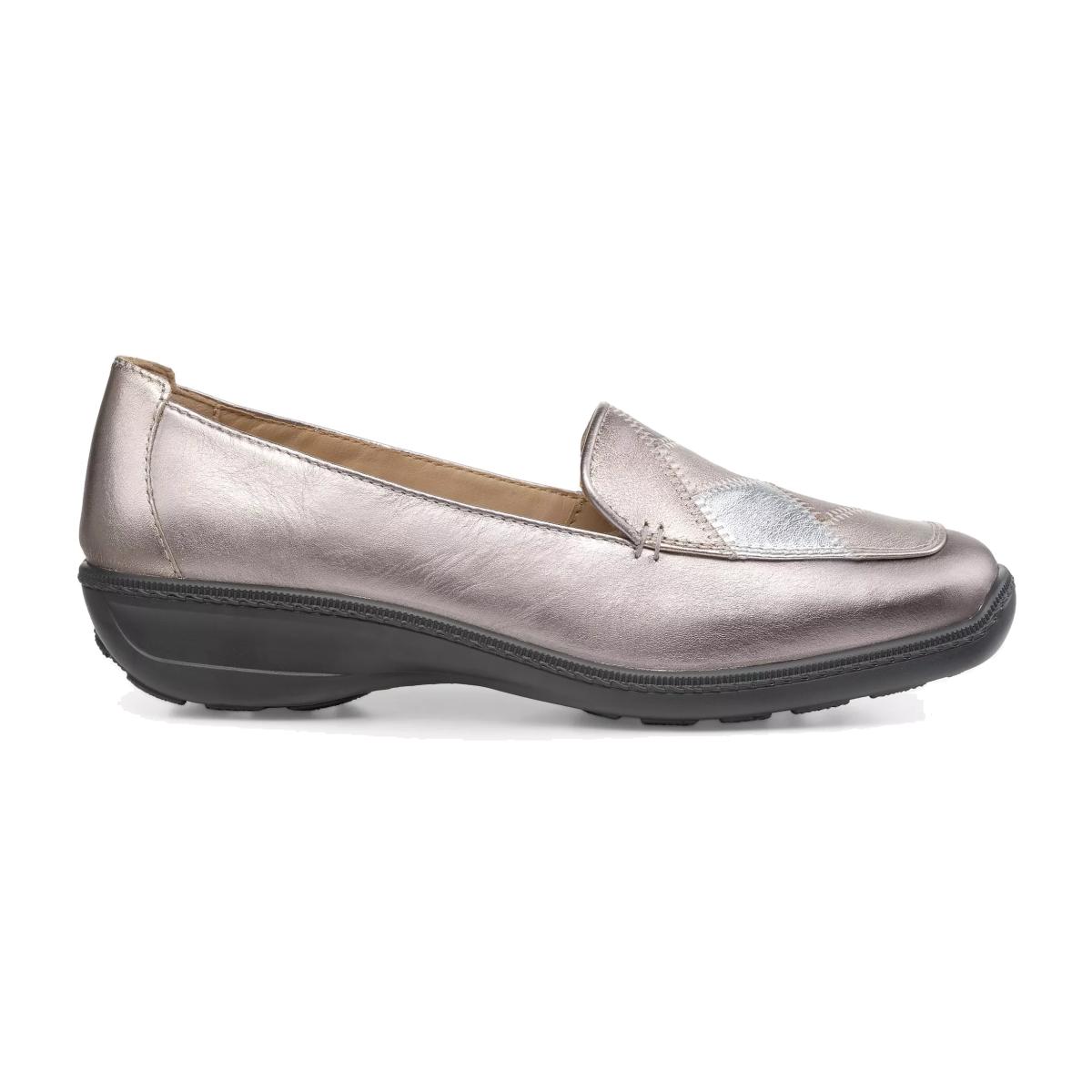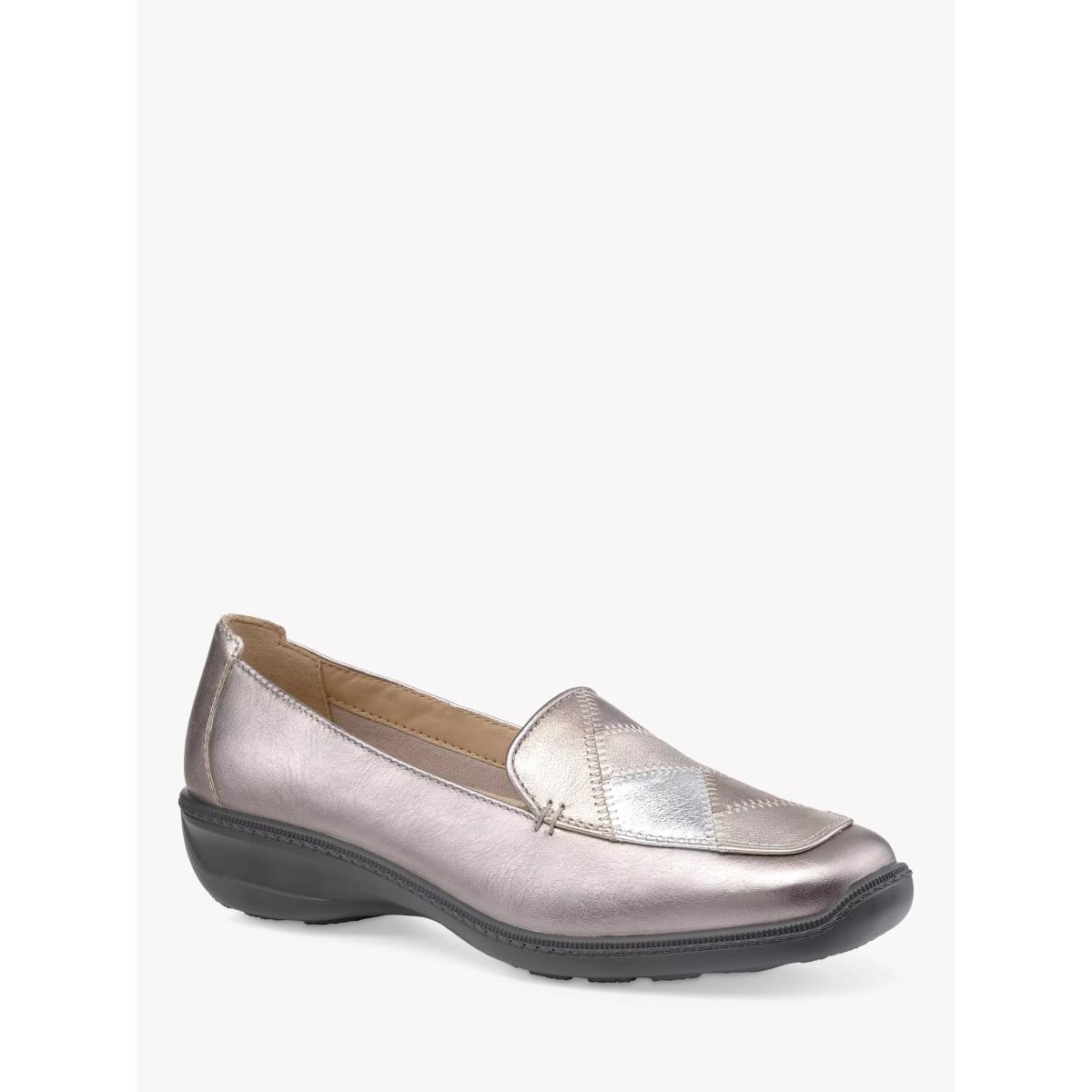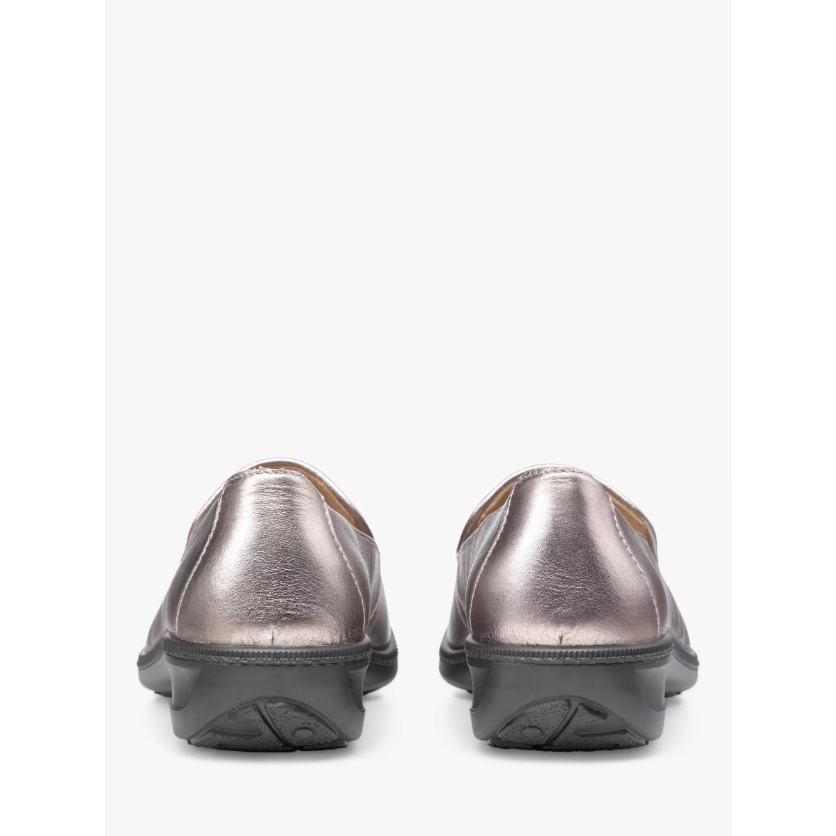 Hotter Faith II Leather Cushioned Wedge Loafers, Pewter