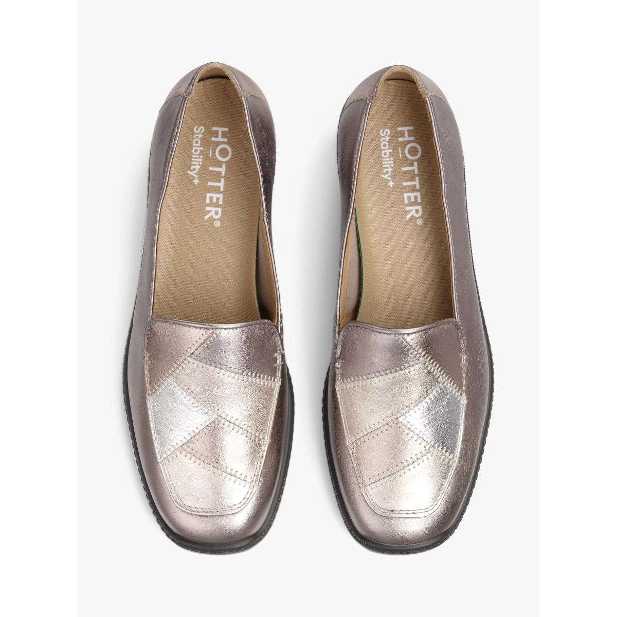 Hotter Faith II loafers are a smart choice for a contemporary, casual look that’s both stylish and comfortable. Their pewter leather finish pairs effortlessly with neutral or metallic accents, making them versatile across many interior-inspired styles - think modern minimalism or metallic-accented spaces. When showcasing these in an interior context, consider placing them on a sleek, understated shoe rack or a chic bench in a mudroom or entryway corner to highlight their subtle luxury. Practical styling tips include pairing them with neutral-toned trousers or even a soft, textured throw pillow in a living room for a subtle nod to their understated sheen. They work well in spaces with black, grey, or metallic accents, adding a touch of urban sophistication to your overall aesthetic while remaining practical and easy to incorporate.