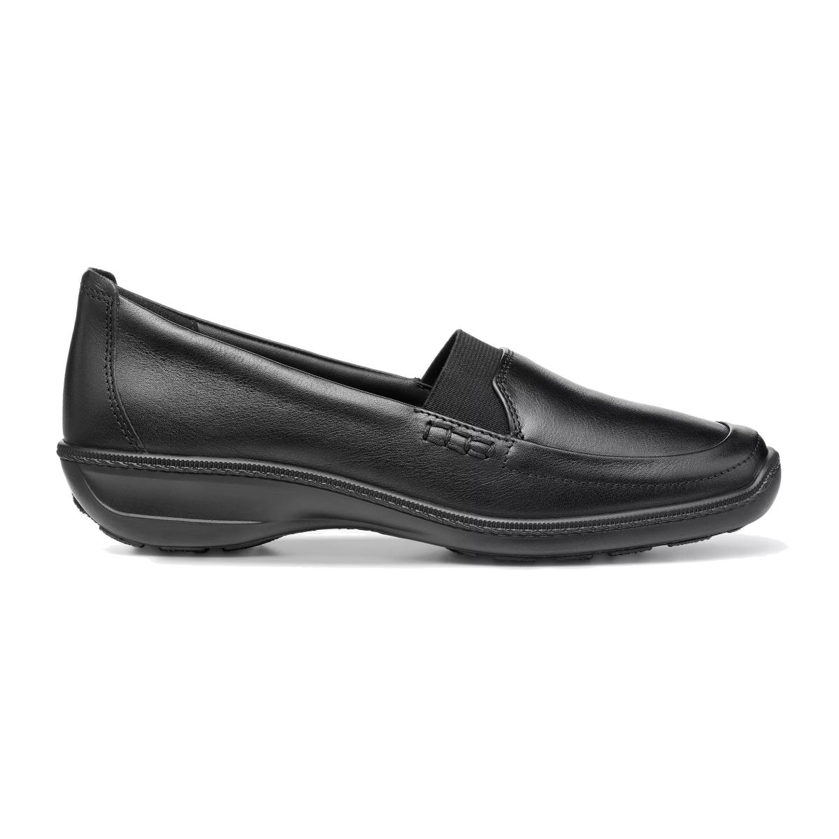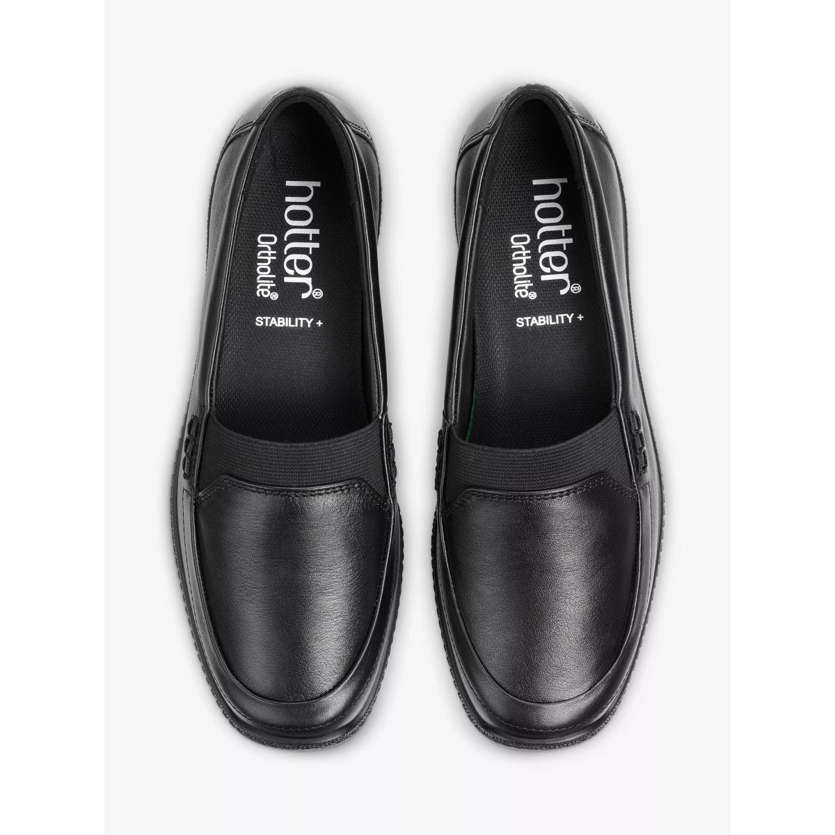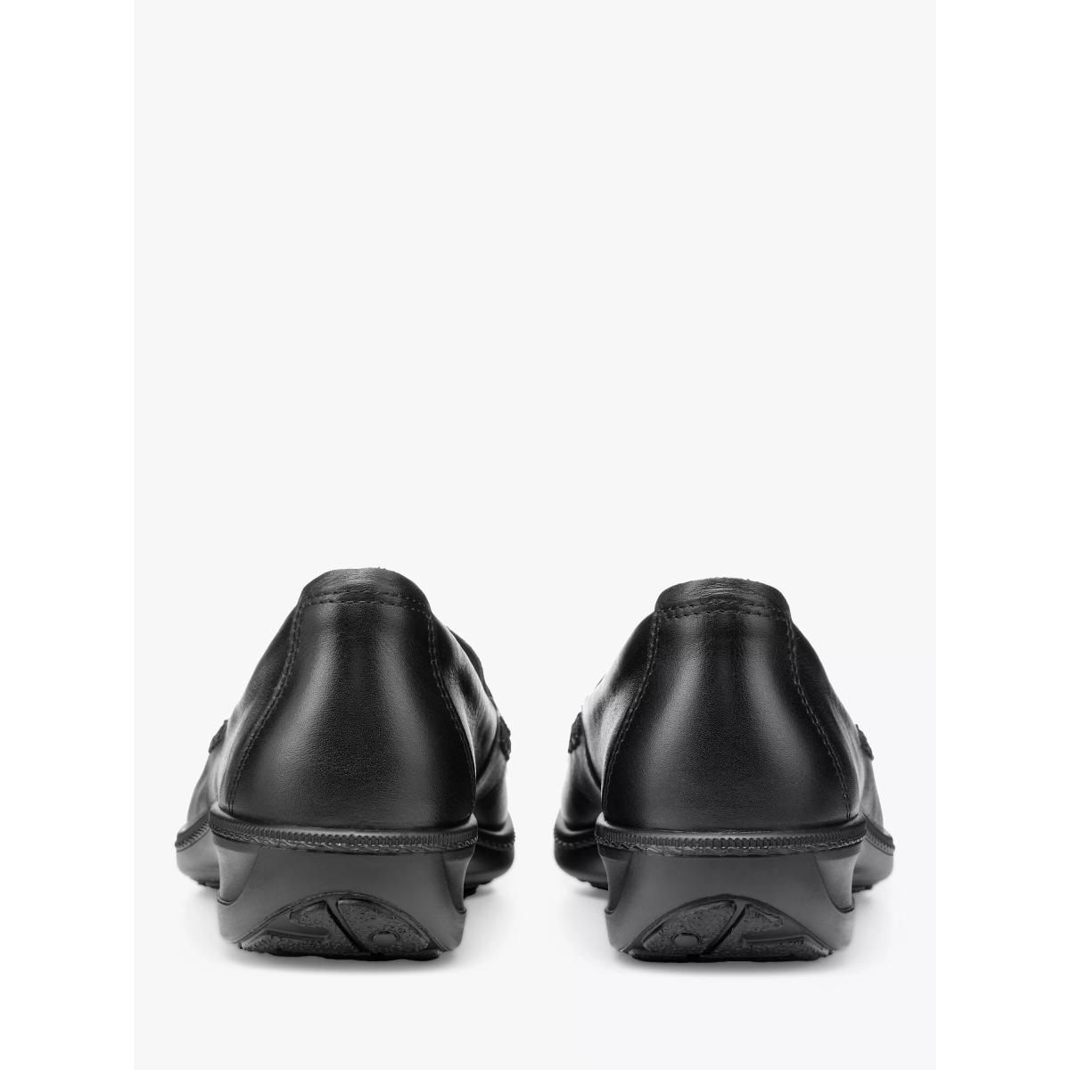 Hotter Faith II Wide Fit Leather Cushioned Wedge Loafers, Black