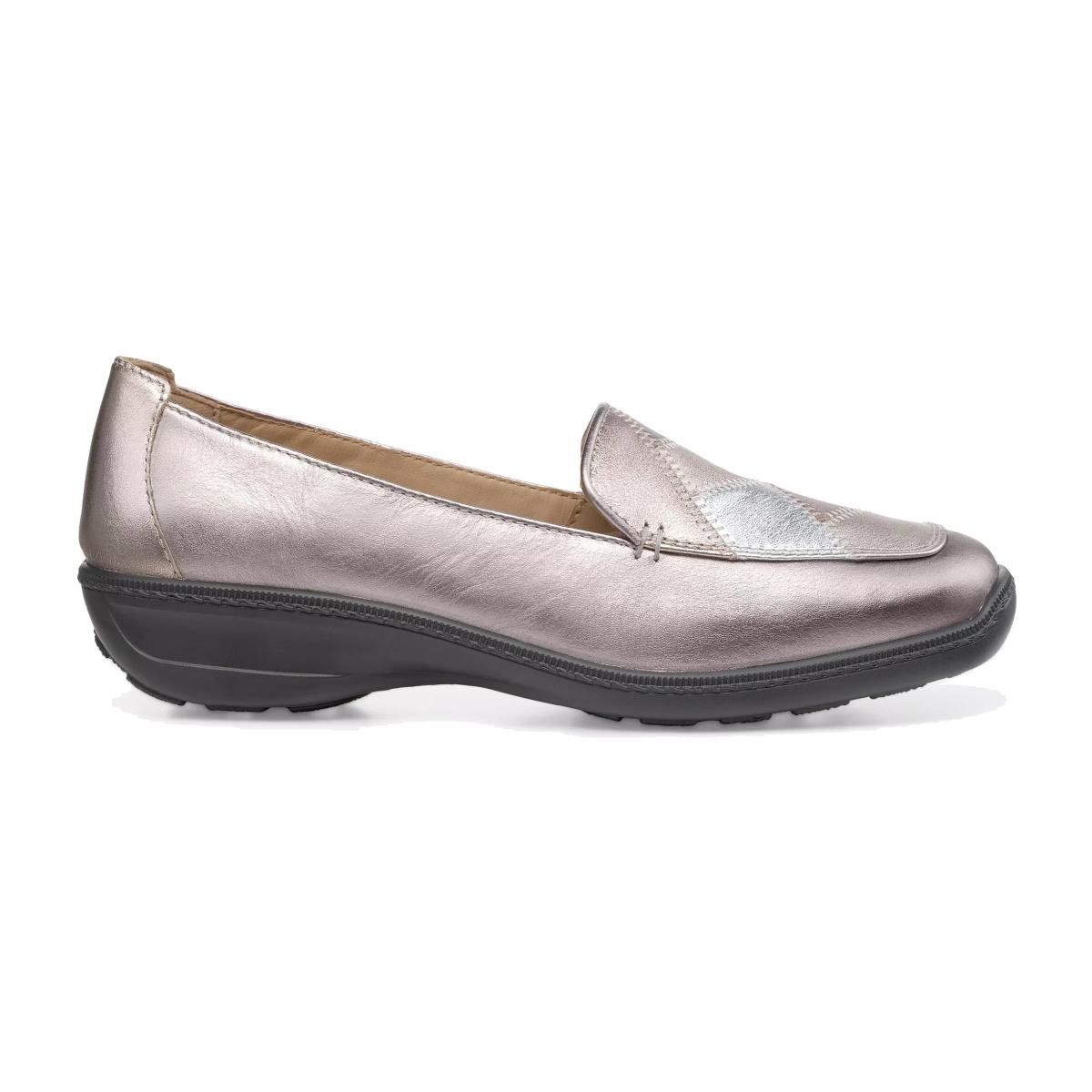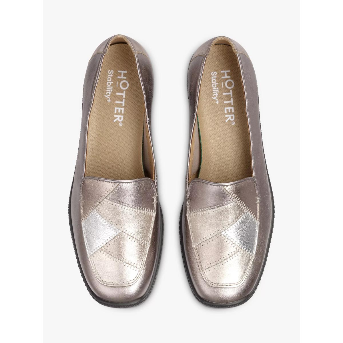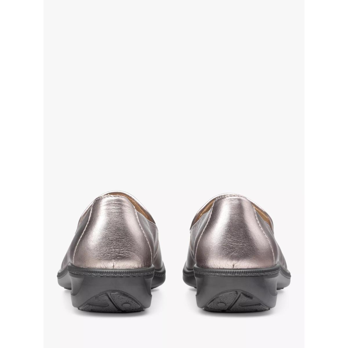 Hotter Faith II Wide Fit Leather Cushioned Wedge Loafers, Pewter