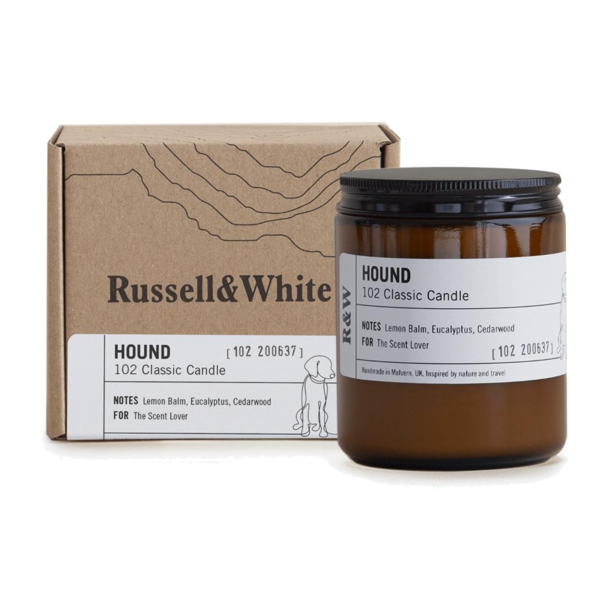With extracts of citrusy lemon balm, crisp eucalyptus and warm cedarwood, this unique fragrance has carefully been created to neutralise and eliminate unwanted pet odours, leaving your home smelling fresh. Our most-popular size, the classic candle fits all occasions and fragrances every type of room or space. Made using 100% soy wax and set in an amber glass jar with a single cotton/linen mix wick, topped with an aluminium screw top lid. Enclosed within a signature Russell & White box, inspired by the hills in our hometown of Malvern.