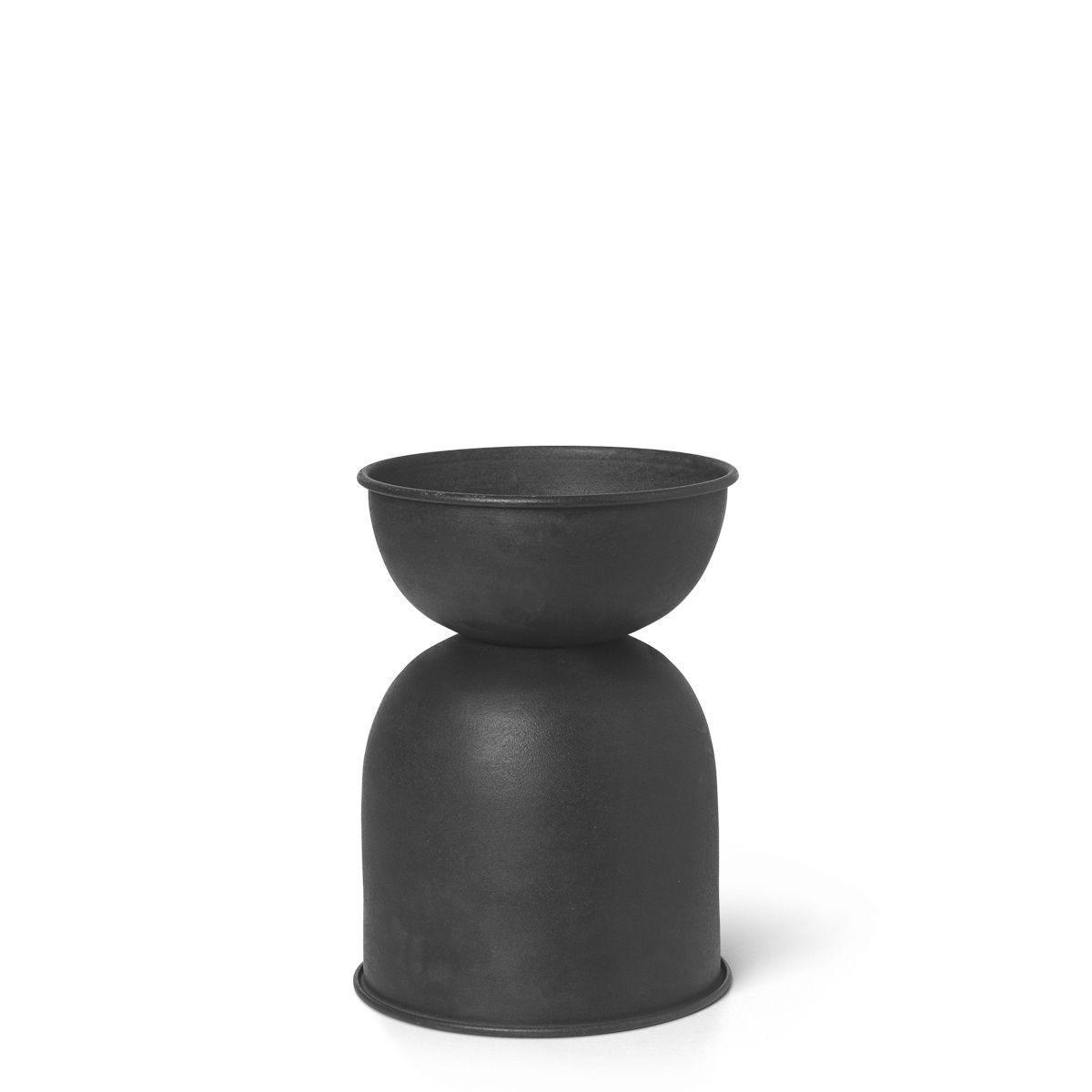 Made from blackened metal, the Hourglass flowerpot displays a neo-rustic style that responds perfectly to our need for authenticity and going back to our roots. Its round, simple, solid lines evoke an antique vase. The silhouette and volume are perfectly balanced. Reversible, this pot can be used on both sides (drain hole with rubber stopper on both sides). It can be used indoors as well as out. This unpretentious pot with its simple, authentic design will show off your flowers to best effect. Equally at home in a lounge as in an entrance or bedroom, it’s perfect for creating an original, modern green space. Raised high on their pedestal, your plants will no longer go unnoticed: with all eyes on them, they’ll become the focal point of your decor!.