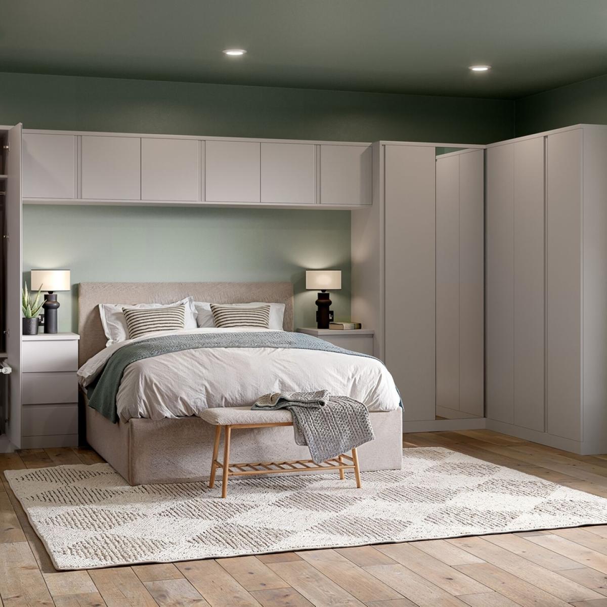 The House Beautiful bedroom range is exclusive to Homebase and offers a selection of different finishes and storage configurations to suit your needs. With a range of carcass colours and contrasting door designs, you can select the look to fit your bedroom aesthetic. The House Beautiful range now includes the fully fitted look with this combination pack which includes the wardrobe, end panels, plinth and cornice, meaning you can complete your bedroom with a luxury look.