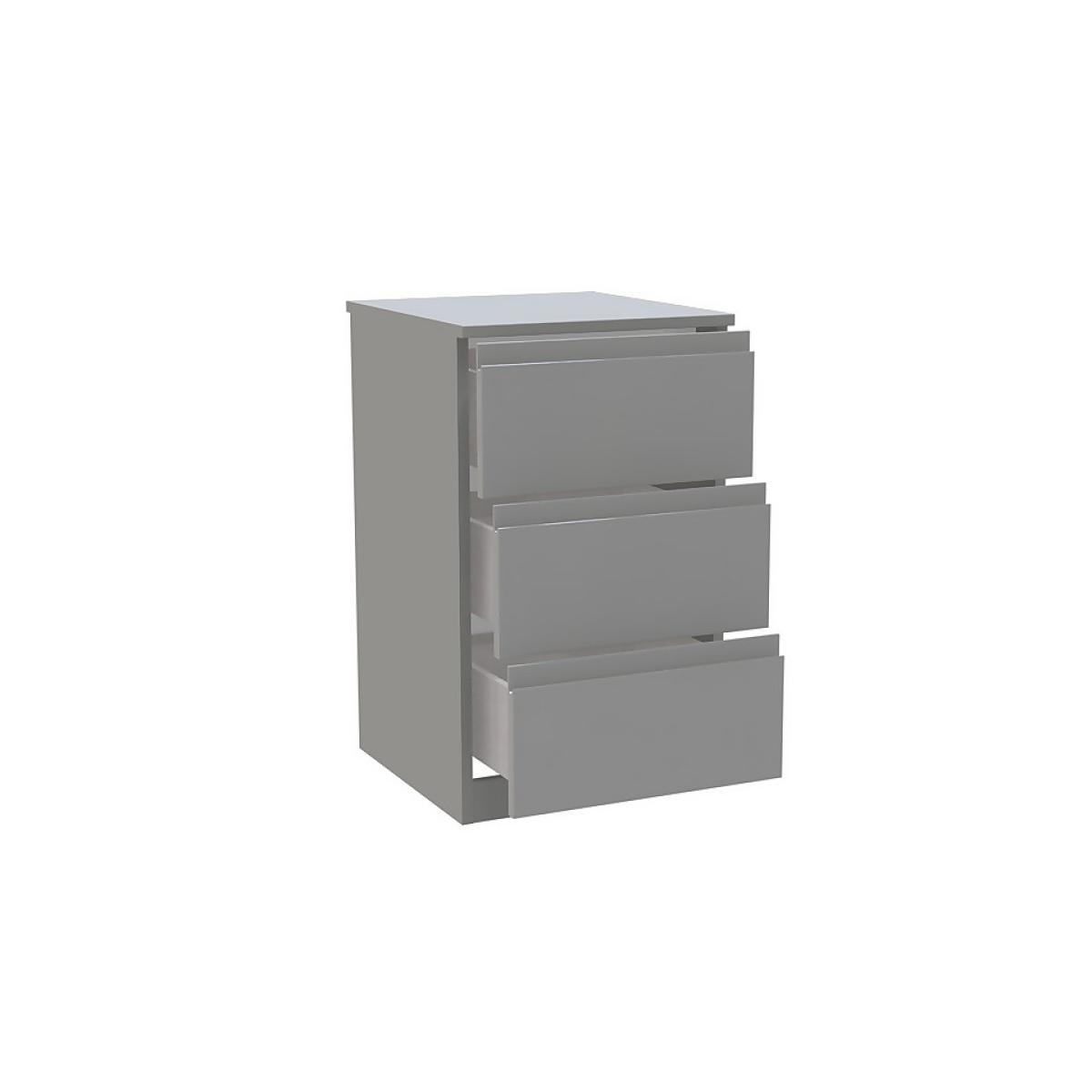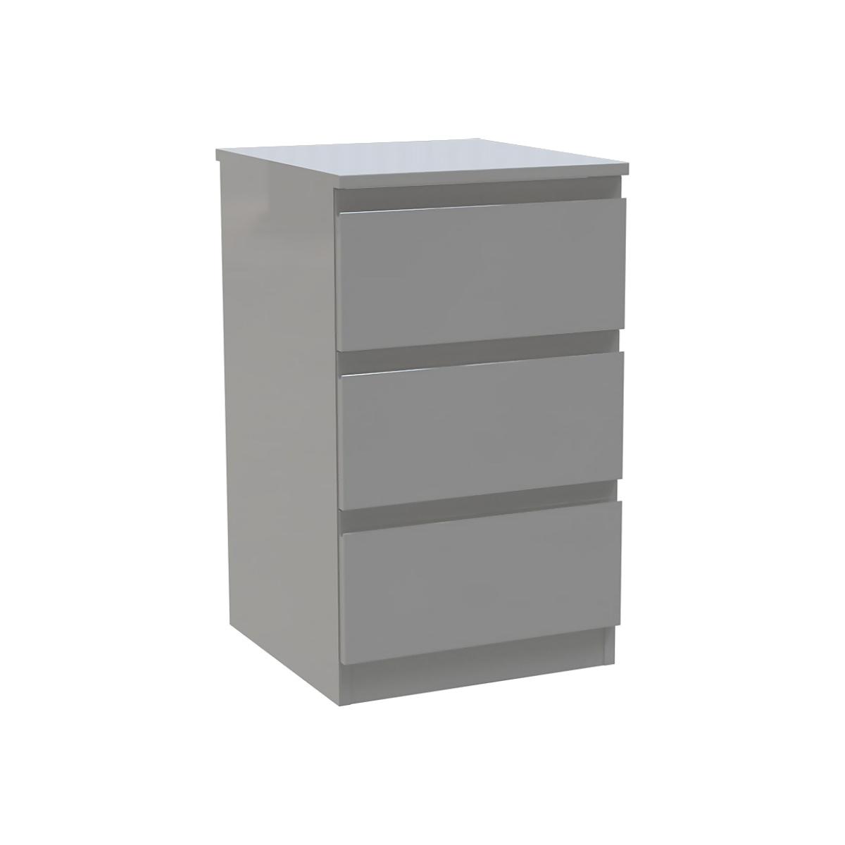 The House Beautiful bedroom range available exclusively at Homebase is full of great ideas and designs for your home. This three drawer handleless chest has been finished in a luxurious gloss grey and features colour-matched carcass and handleless drawer fronts, fully wrapped panels, soft-close clip-on Blum runners and an internal drawer box finished in a textured linen effect.