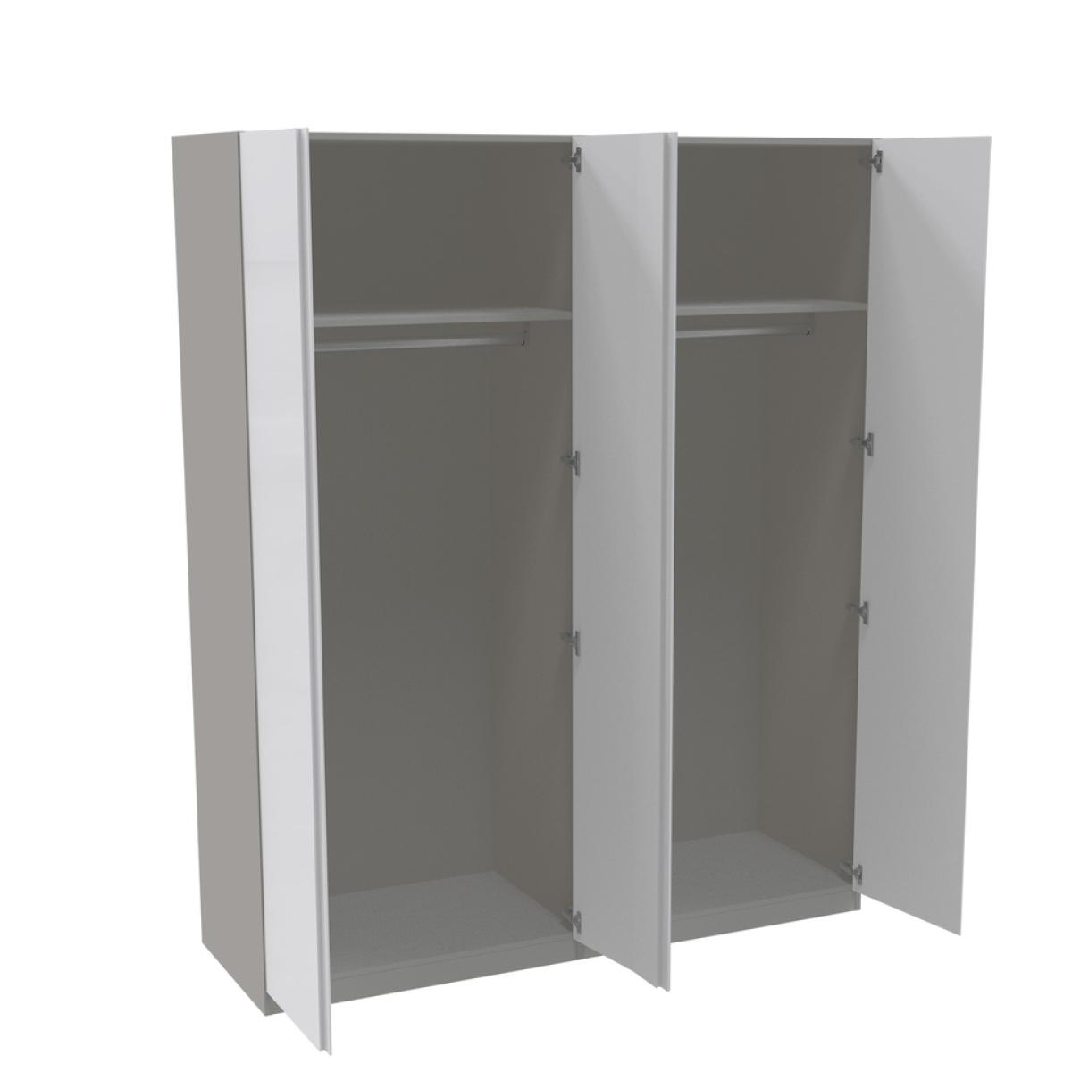 The House Beautiful bedroom range is exclusive to Homebase and offers a selection of different finishes and storage configurations to suit your needs. With a range of carcass colours and contrasting door designs, you can select the look to fit your bedroom aesthetic. This four door wardrobe (2 x double units) features a grey carcass and beautiful gloss white handleless doors for a modern sleek look. The wardrobe features premium soft-close clip-on Blum hinges, two shelves and two hanging rails. You can customise your wardrobe with our additional