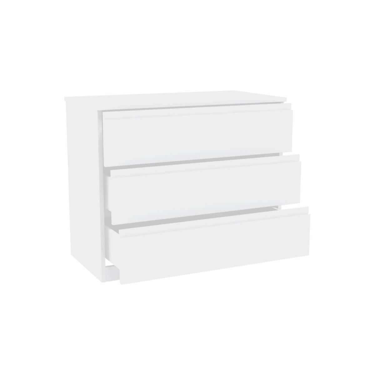 The House Beautiful bedroom range available exclusively at Homebase is full of great ideas and designs for your home. This three drawer chest has been finished in a luxurious matt white and features colour-matched carcass and handleless drawer fronts, fully wrapped panels, soft-close clip-on Blum runners and an internal drawer box finished in a textured linen effect.