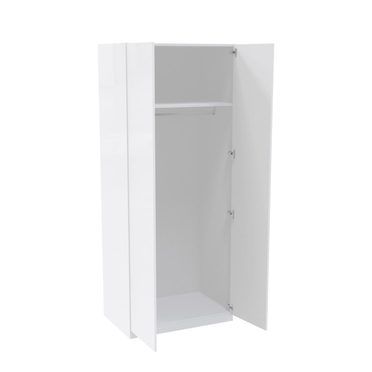 The House Beautiful range is exclusive to Homebase and offers a selection of different finishes and storage configurations to suit your needs. With a range of carcass colours and contrasting door designs, you can select the look to fit your bedroom aesthetic. This double wardrobe features a white carcass and beautiful gloss white slab doors for a modern sleek look. The wardrobe features premium soft close Blum hinges, a shelf and a hanging rail. You can customise your wardrobe with our additional