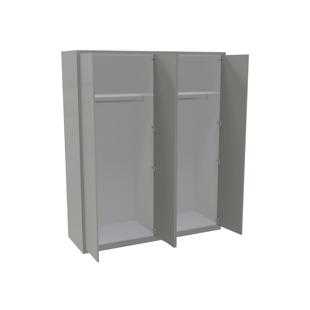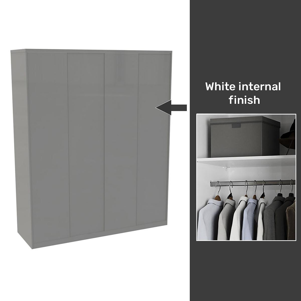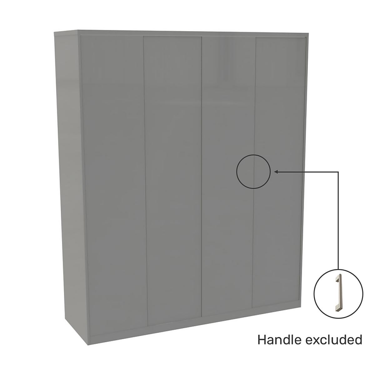 The House Beautiful range is exclusive to Homebase and offers a selection of different finishes and storage configurations to suit your needs. With a range of carcass colours and contrasting door designs, you can select the look to fit your bedroom aesthetic. The House Beautiful range now includes the fully fitted look with this combination pack which includes the wardrobe, end panels, plinth and cornice, meaning you can complete your bedroom with a luxury look. Coordinating chests of drawers are also available separately. This four door wardrobe (2 x double units) features a white internal carcass and includes end panels, plinth and matching cornice all in a finish to match the beautiful luxe gloss grey slab doors. The wardrobe features premium soft close clip-on Blum hinges, two shelves and two hanging rails. You can customise your wardrobe with our additional