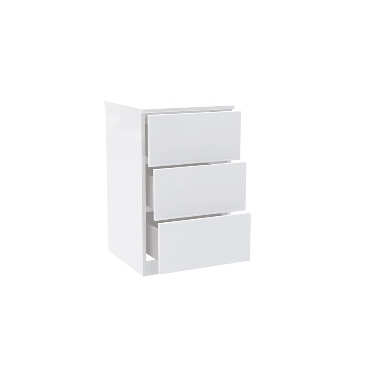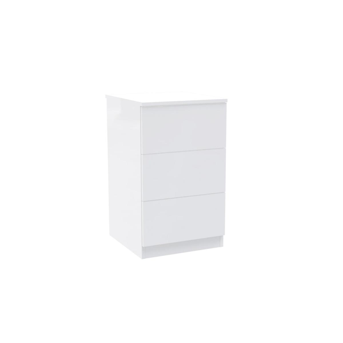 The House Beautiful bedroom range available exclusively at Homebase is full of great ideas and designs for your home. This three drawer chest has been finished in a luxurious gloss white and features colour-matched carcass and drawer fronts, fully wrapped panels, soft-close clip-on Blum runners and an internal drawer box finished in a textured linen effect.