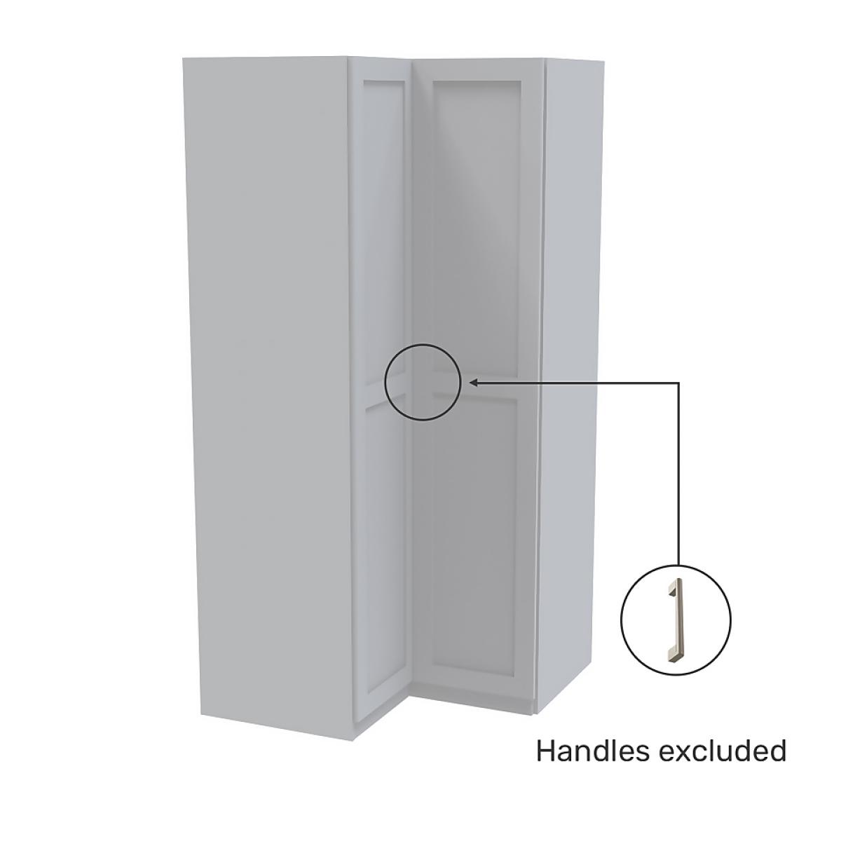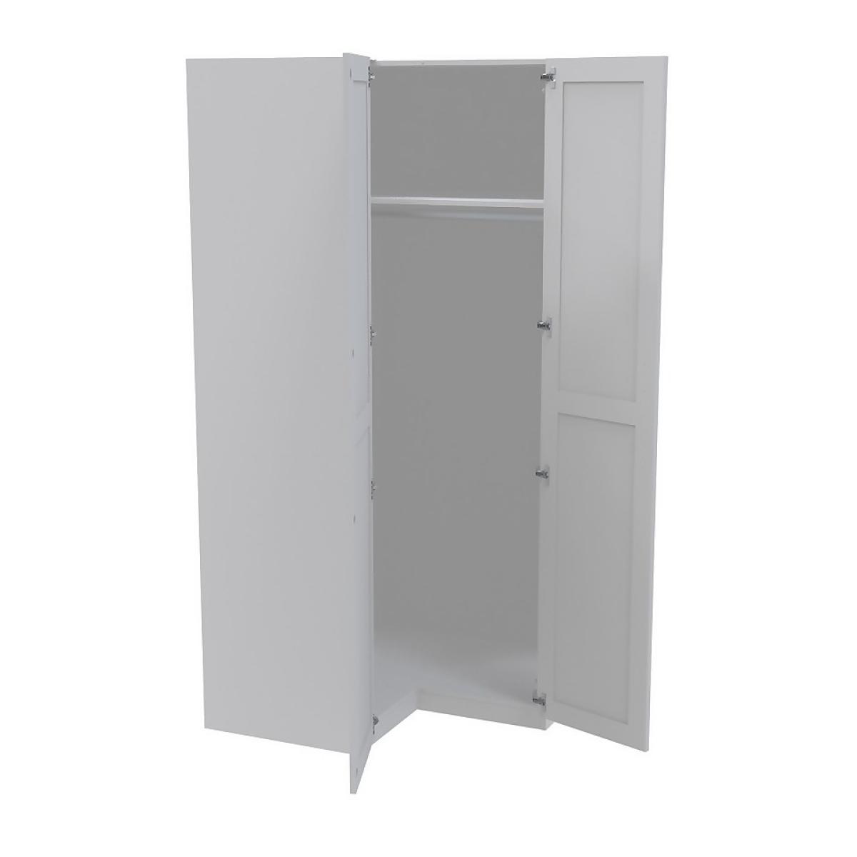 The House Beautiful range is exclusive to Homebase and offers a selection of different finishes and storage configurations to suit your needs. With a range of carcass colours and contrasting door designs, you can select the look to fit your bedroom aesthetic. This corner wardrobe features a white carcass and beautiful shaker doors finished in a luxurious matt white. The wardrobe features premium soft close clip-on Blum hinges, five shelves and a hanging rail. You can customise your wardrobe with our additional